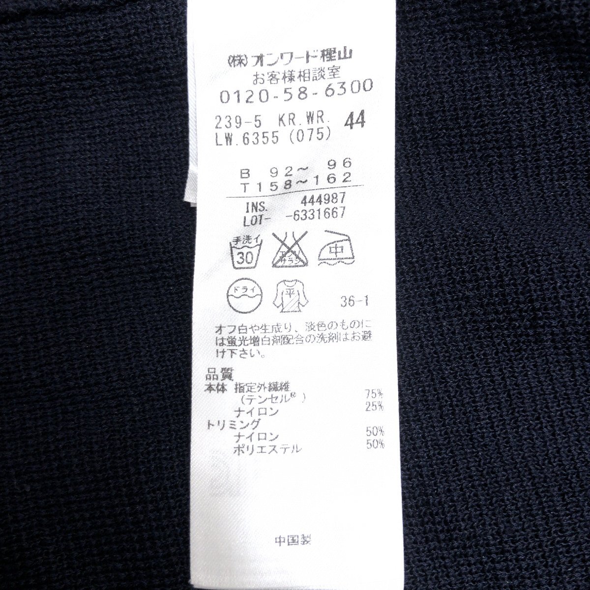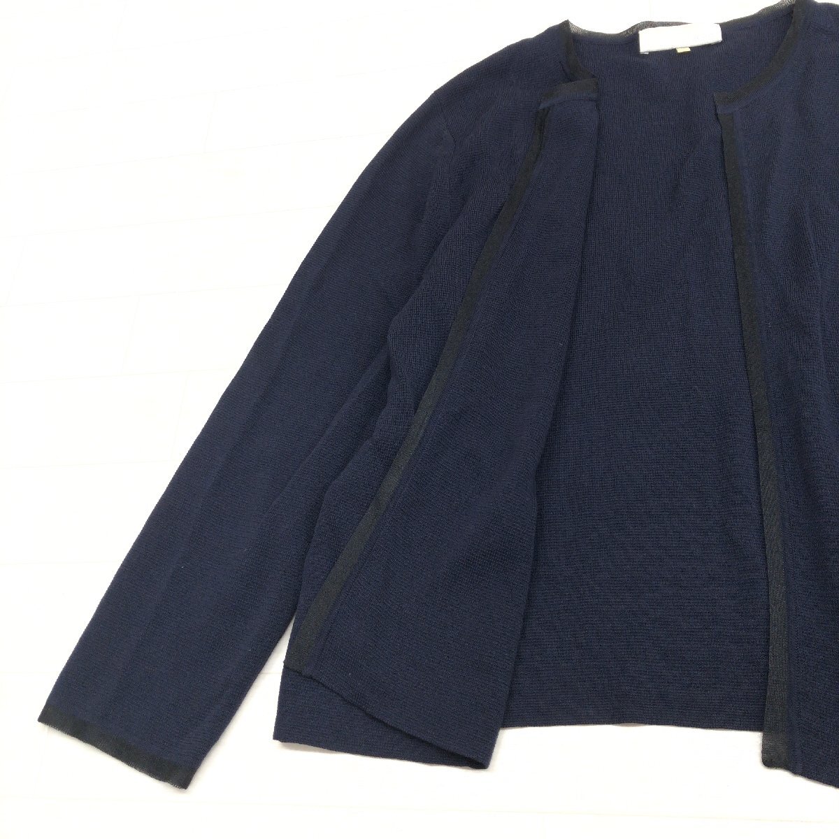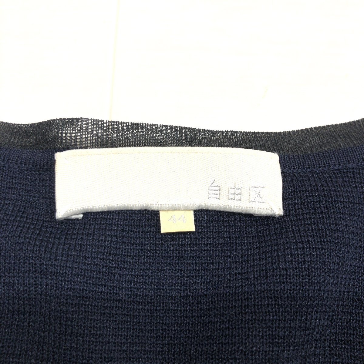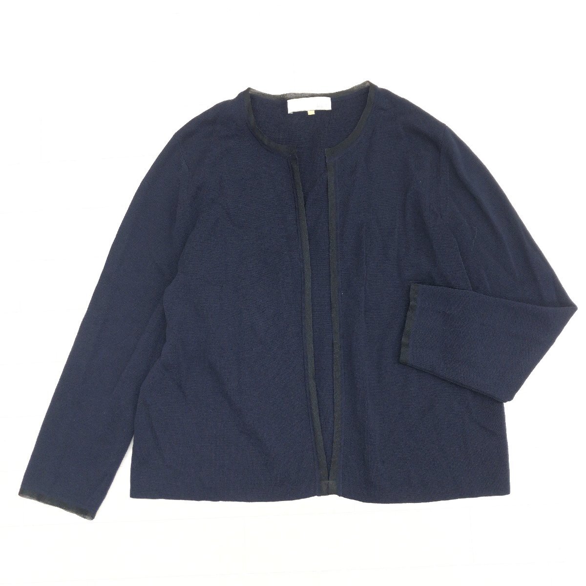 美品 自由区 ジユウク オープン ニット カーディガン 44(2XL) 濃紺 ネイビー ジャケット 羽織り 長袖 3L ゆったり 大きい レディース 婦人