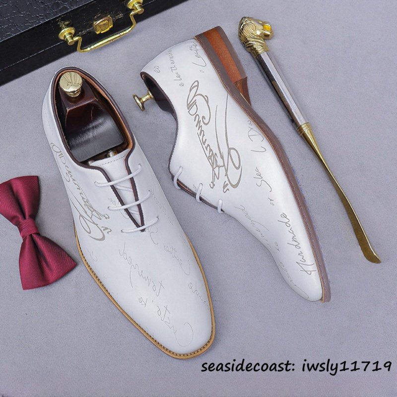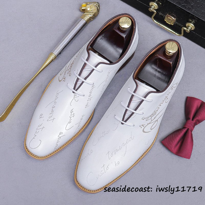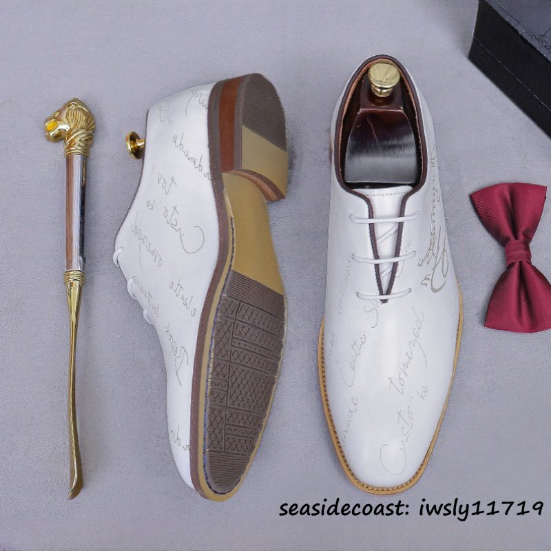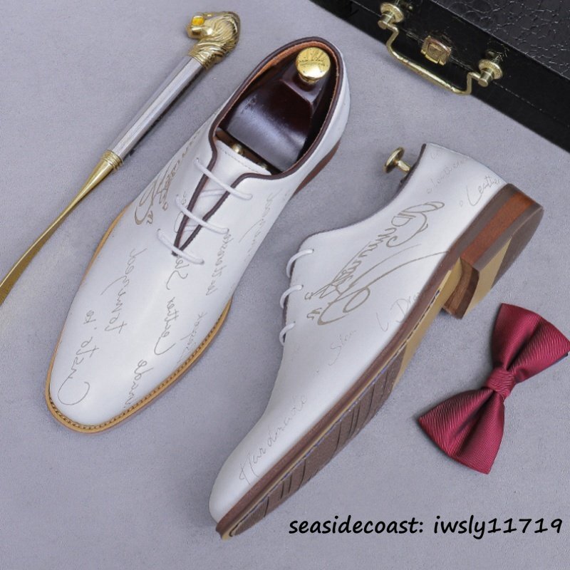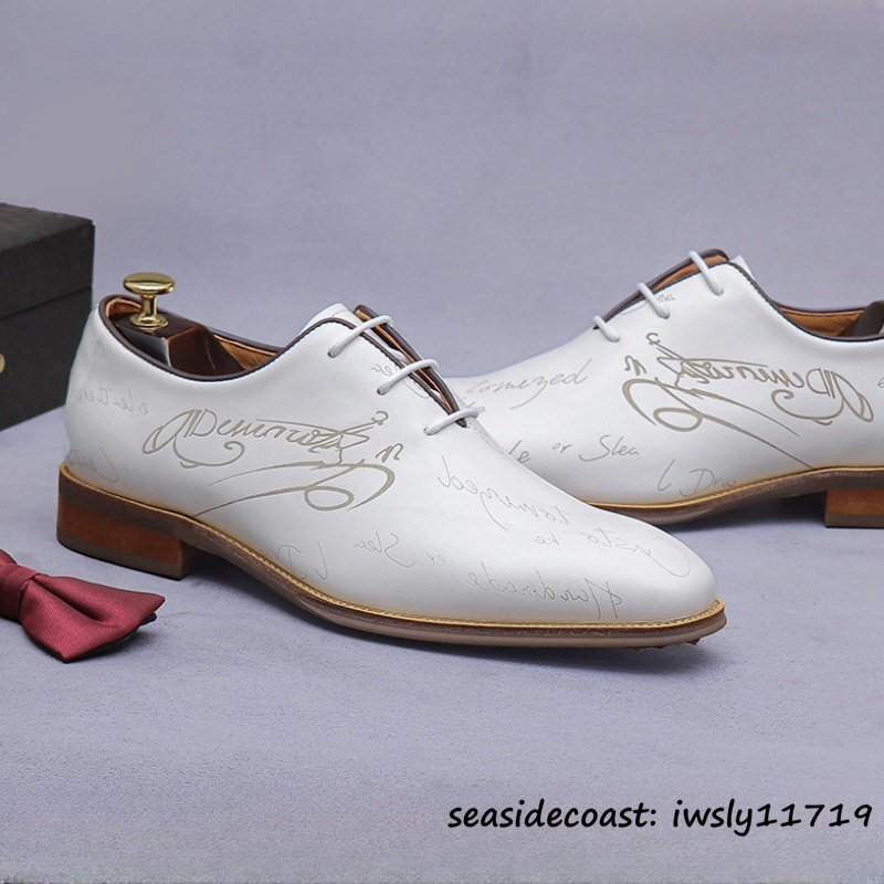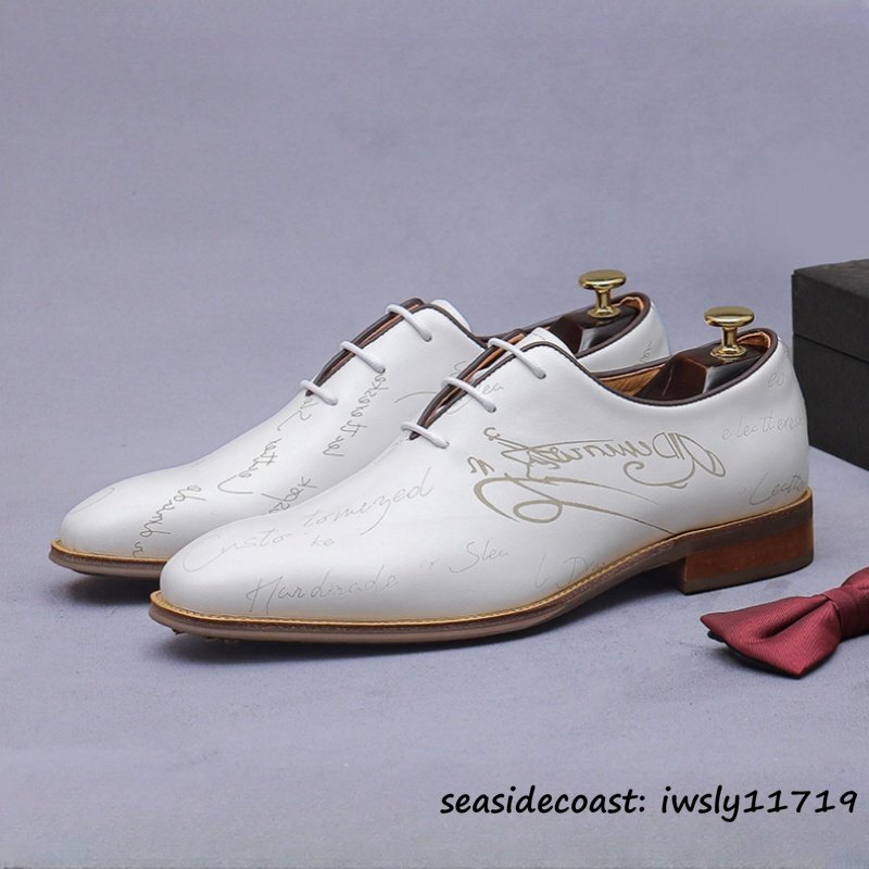 定価9万超★最高級 レザーシューズ メンズ 本革 ビジネスシューズ 職人手塗り上げ 彫り 紳士靴 革靴 上質牛革 フォーマル ホワイト 24.5cm