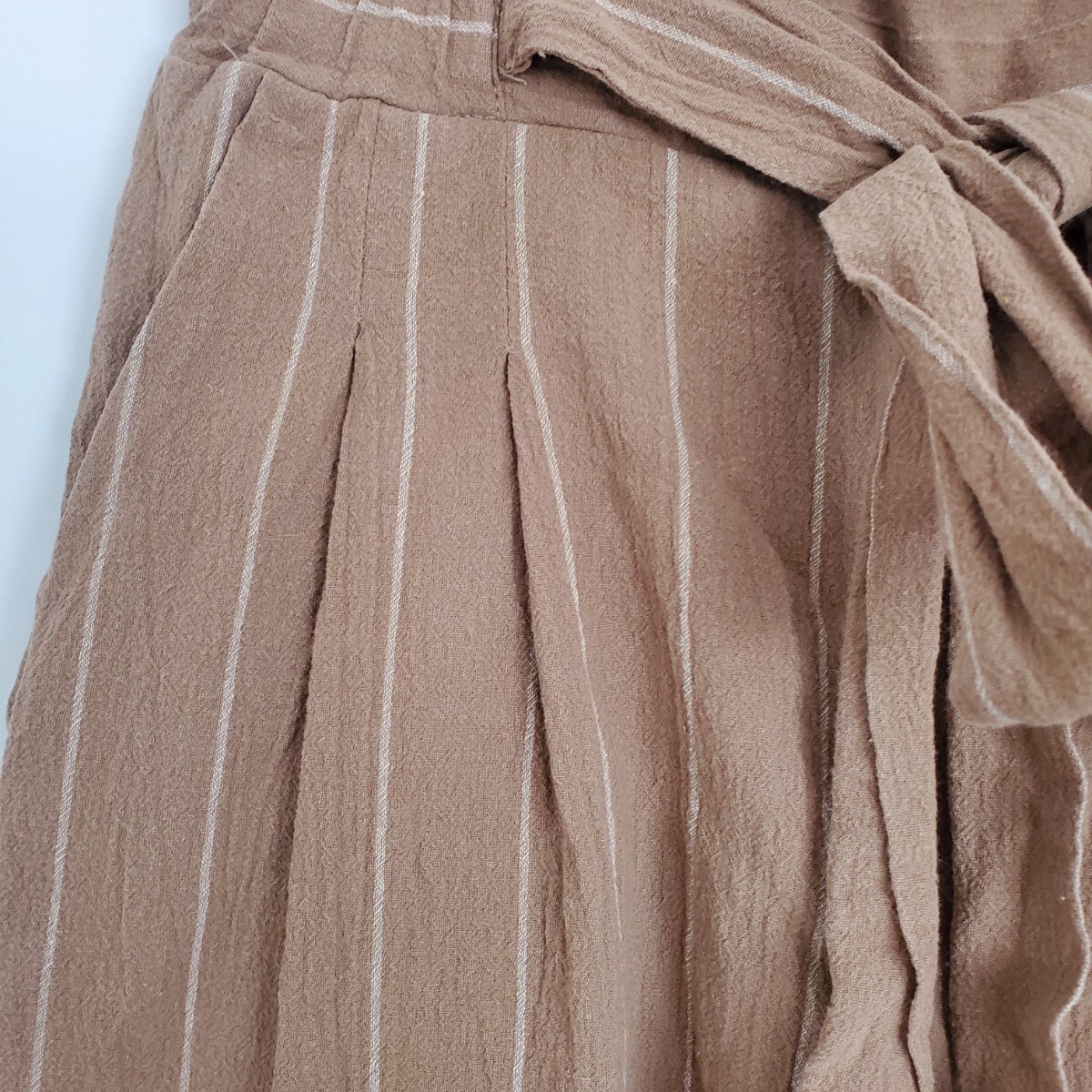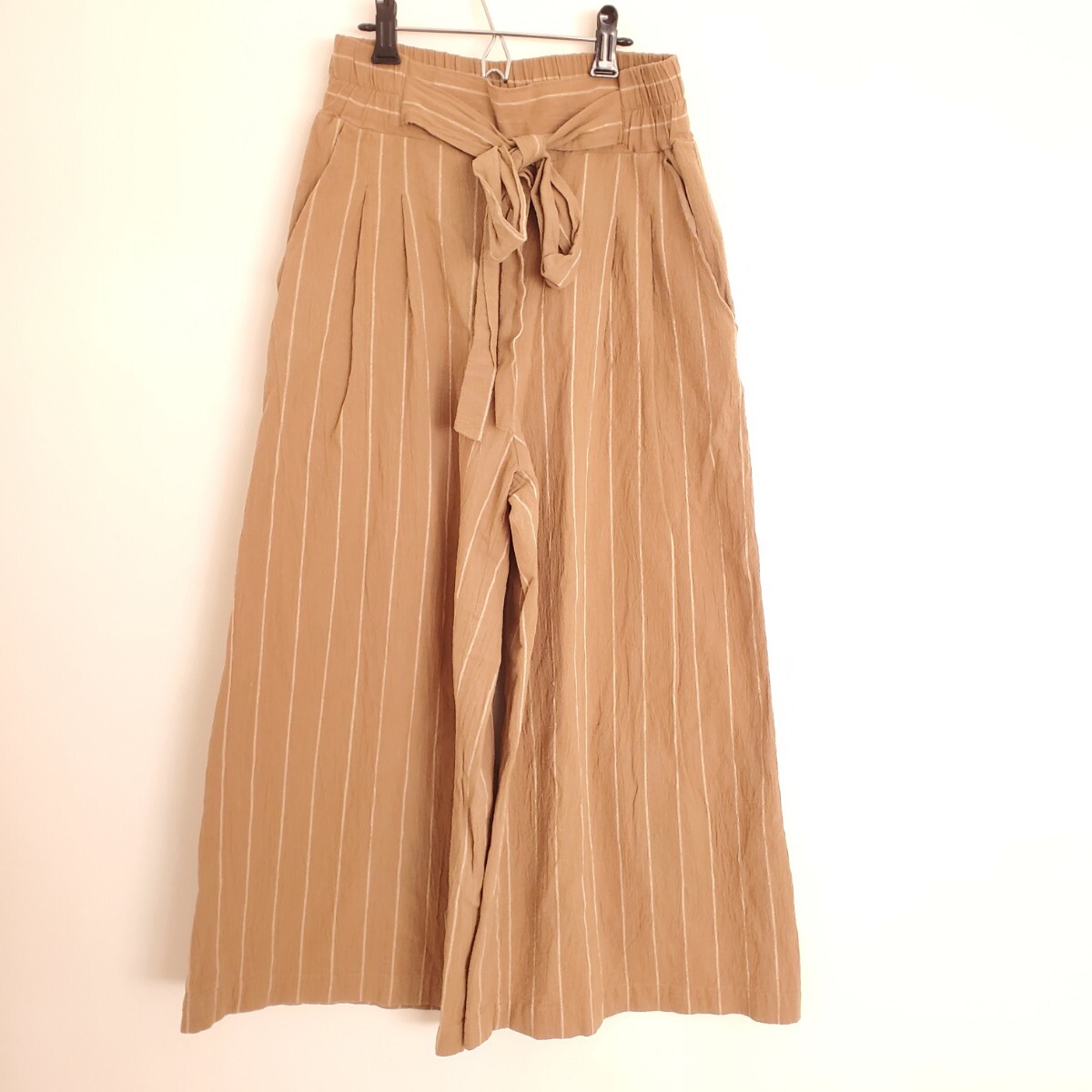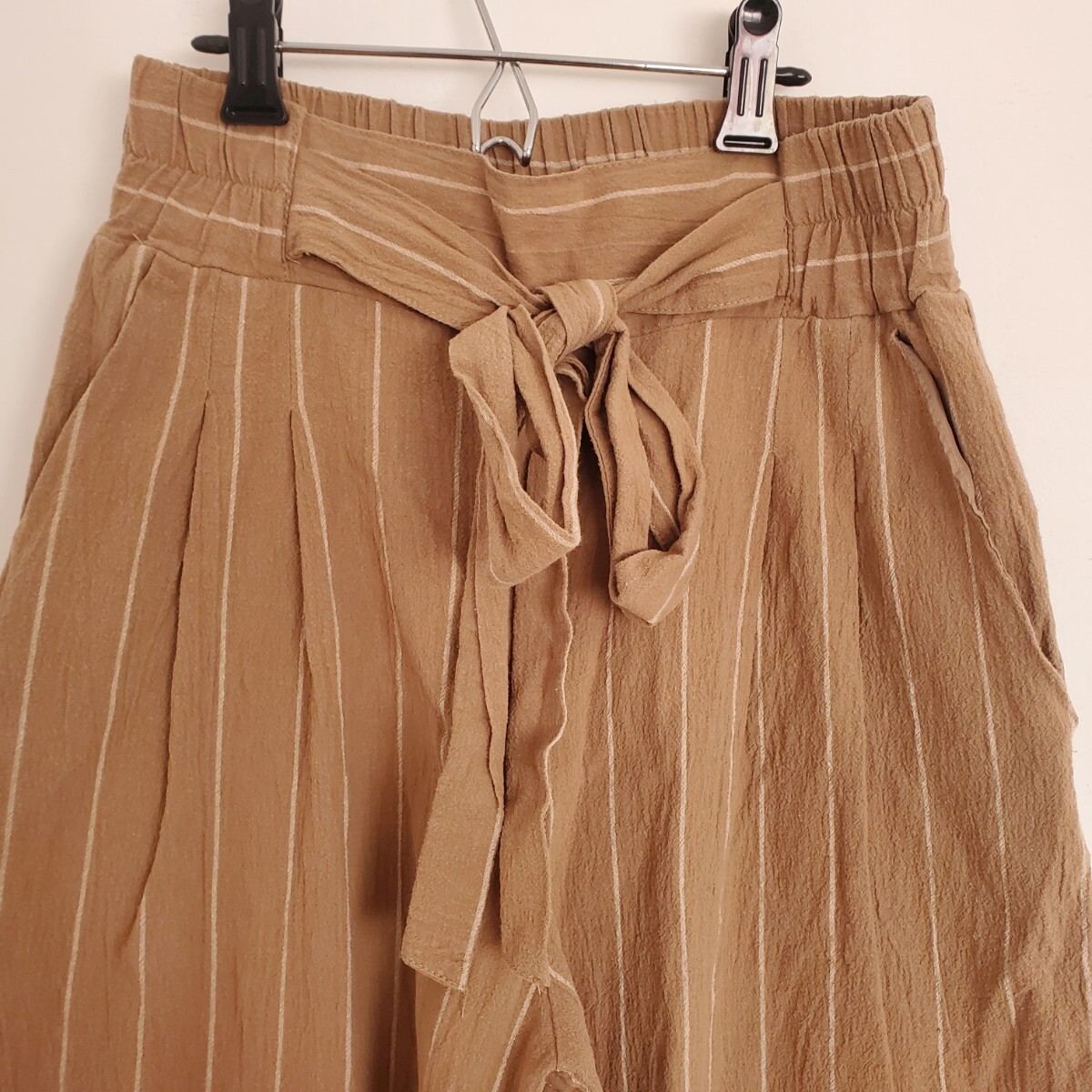 ウエストリボンのワイドパンツ