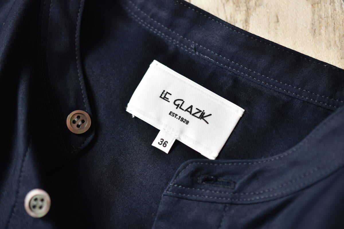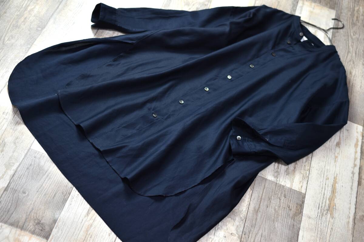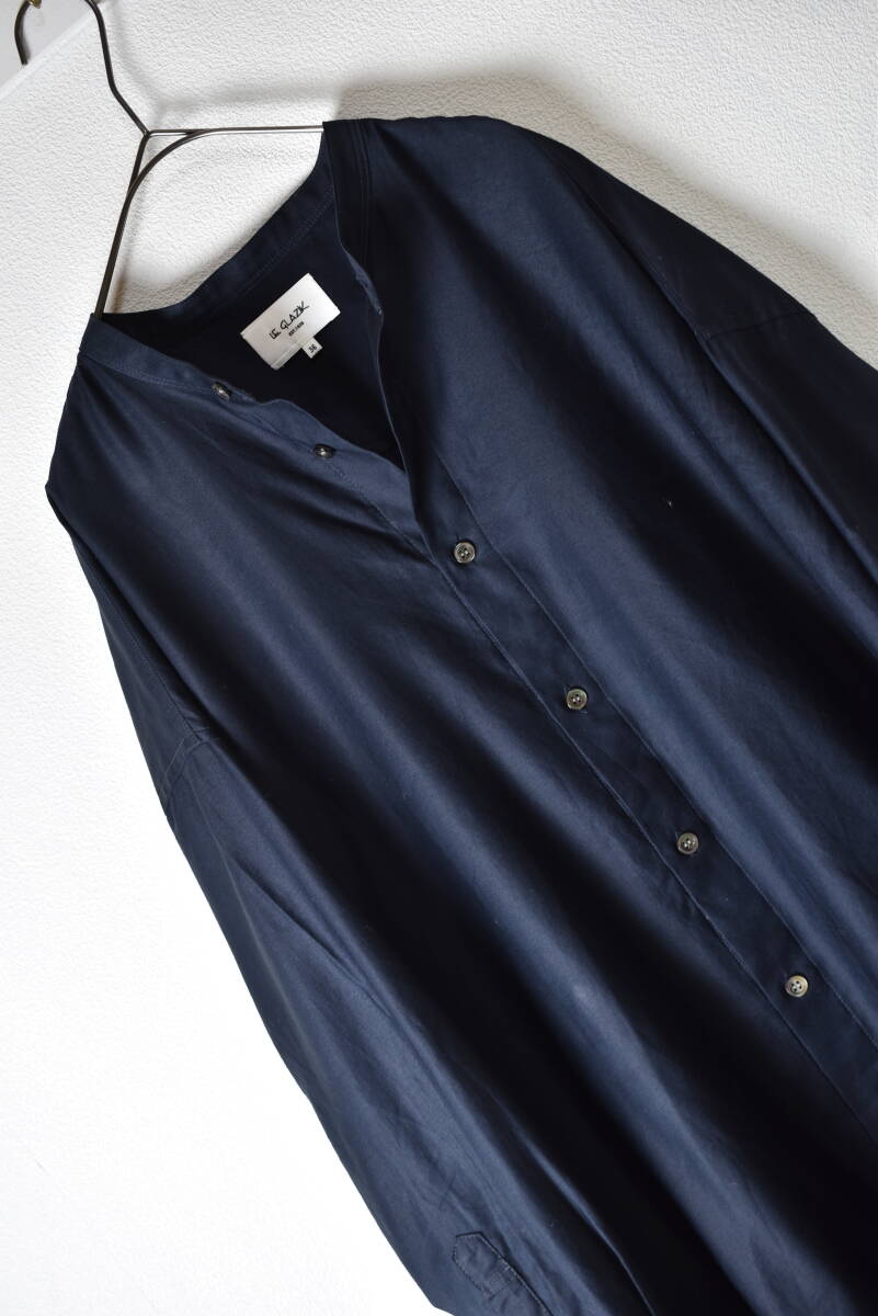 ルグラジック LE GLAZIK ゆったりノーカラーブラウスシャツワンピース 紺色