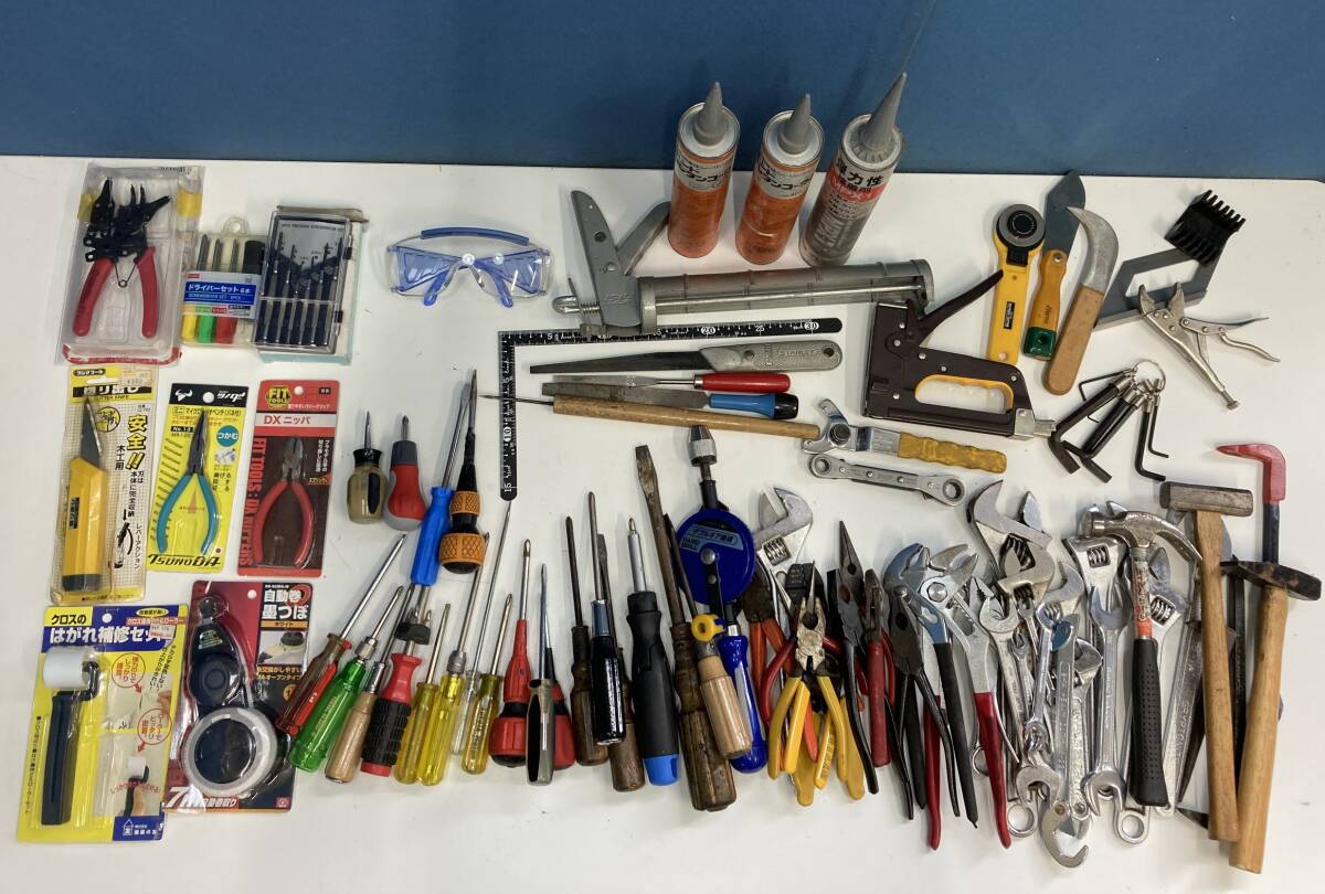 10-o31/1-120 工具 まとめ 85点 総重量約12kg ドライバー レンチ ペンチ バール 金槌 ガンタッカ 他 工具 大工道具 ハンドツール | |||