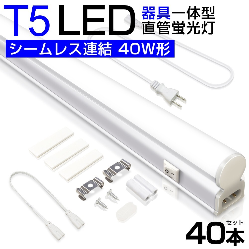40本 T5 led蛍光灯 直管 器具一体型 40W形 昼光色6000K シームレス連結 スイッチ付 120cm 2500LM 消費電力20W 3Mコード AC85-265V D27