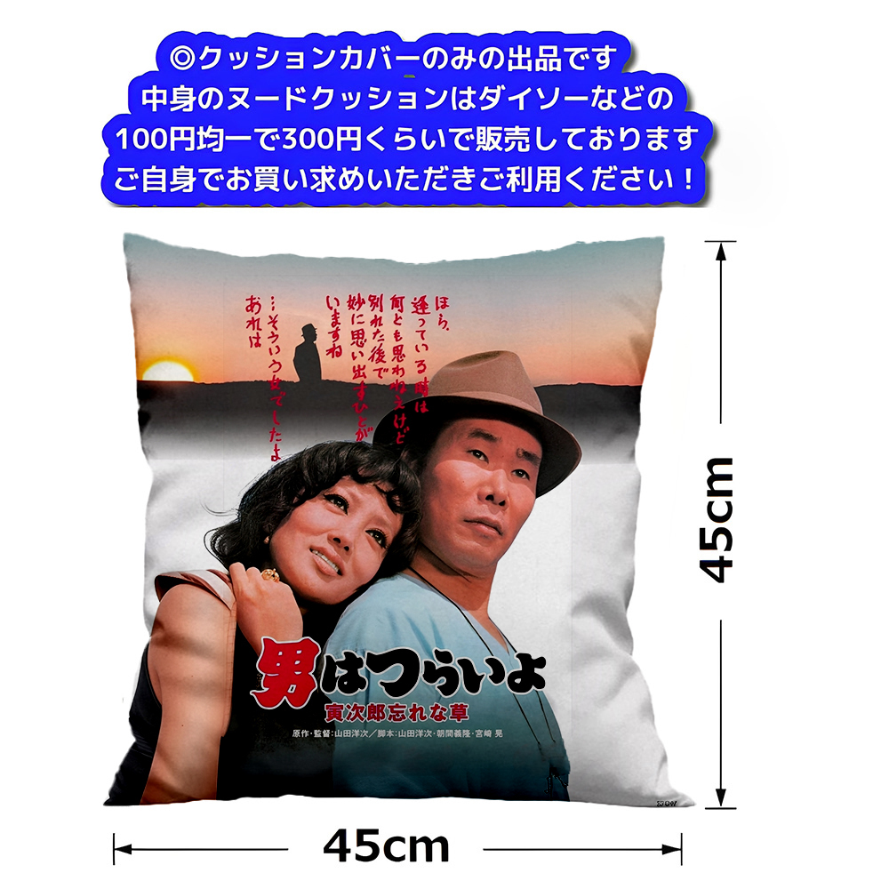 新品 渥美清 男はつらいよ クッションカバー // 45×45cm 枕カバー 中身 100均 ニトリで販売