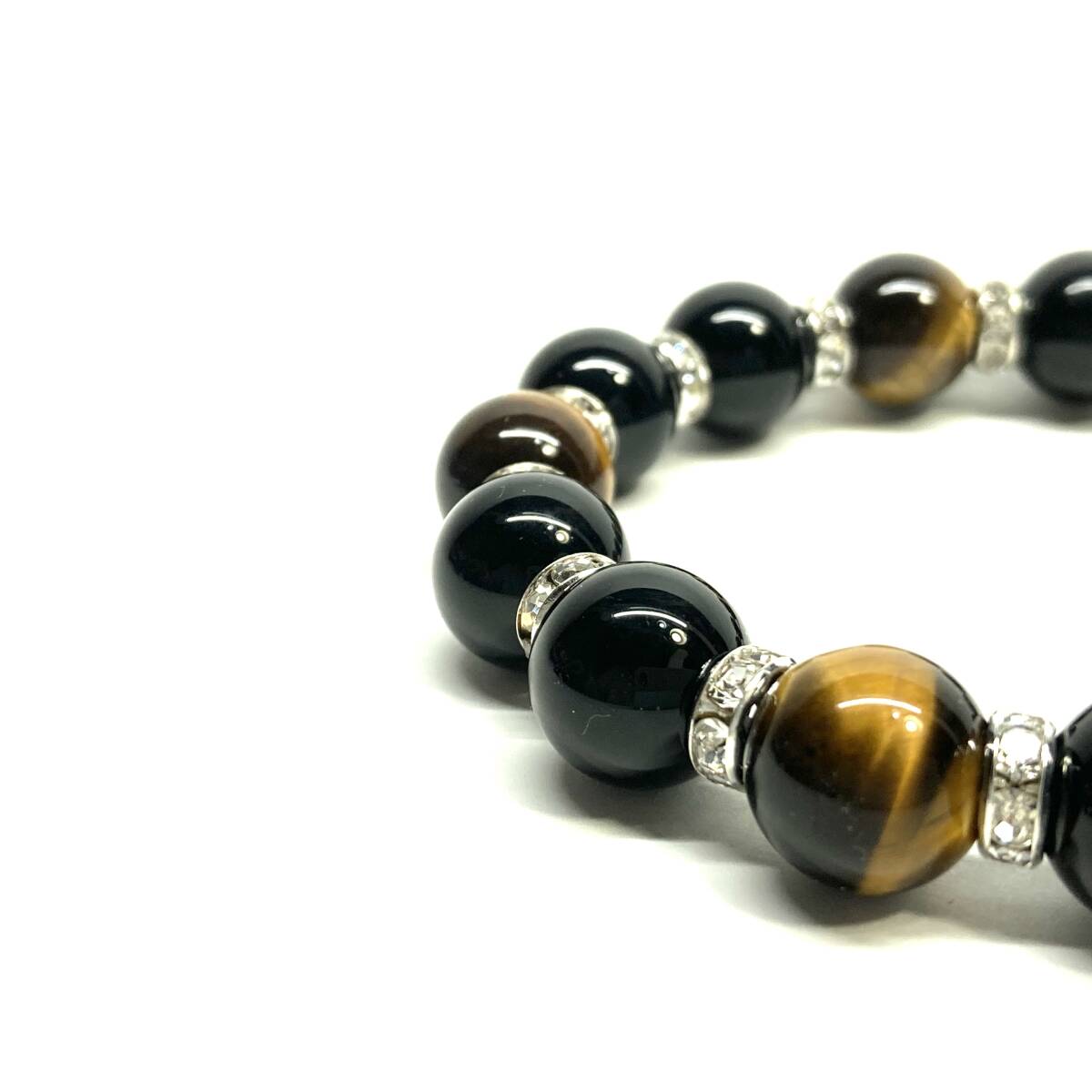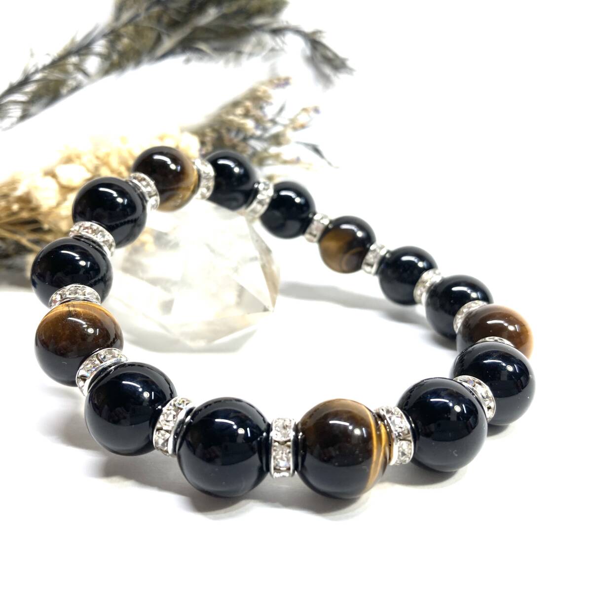 こちらは、モリオンとタイガーアイを組み合わせたパワーストーンブレスレットです。間にはロンデルを挟み高級感あるデザインに仕上げております。程よくインパクトがある12mm玉を使用して内周約18cmです。(サイズ変更の場合は取引ナビにてご連絡をお願いします。) 数に限りがございますので気になる方はお早めにどうぞ。