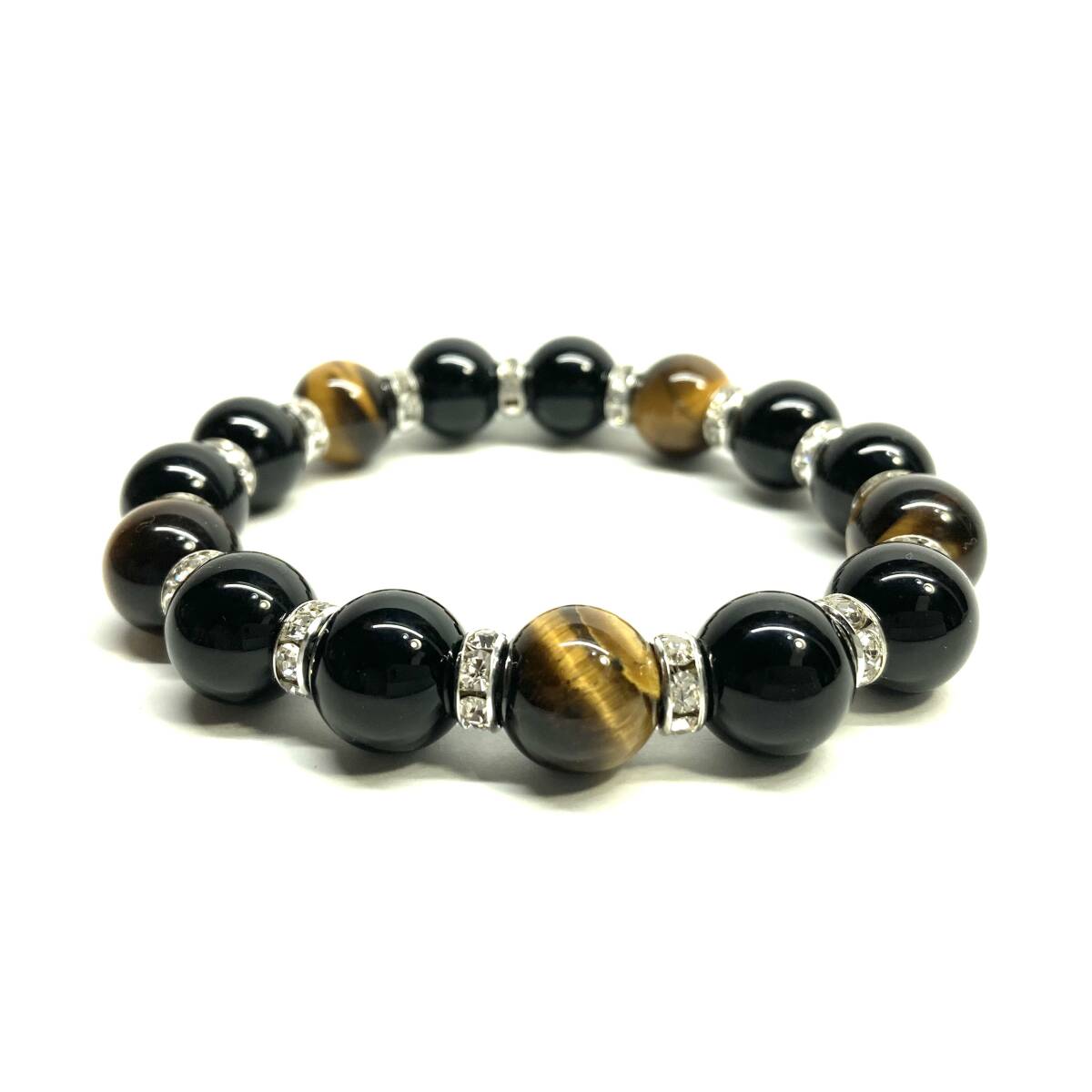モリオン&タイガーアイ パワーストーン ブレスレット 天然石ブレス (シルバー) 12mm 幸運 開運 メンズ 男性♪