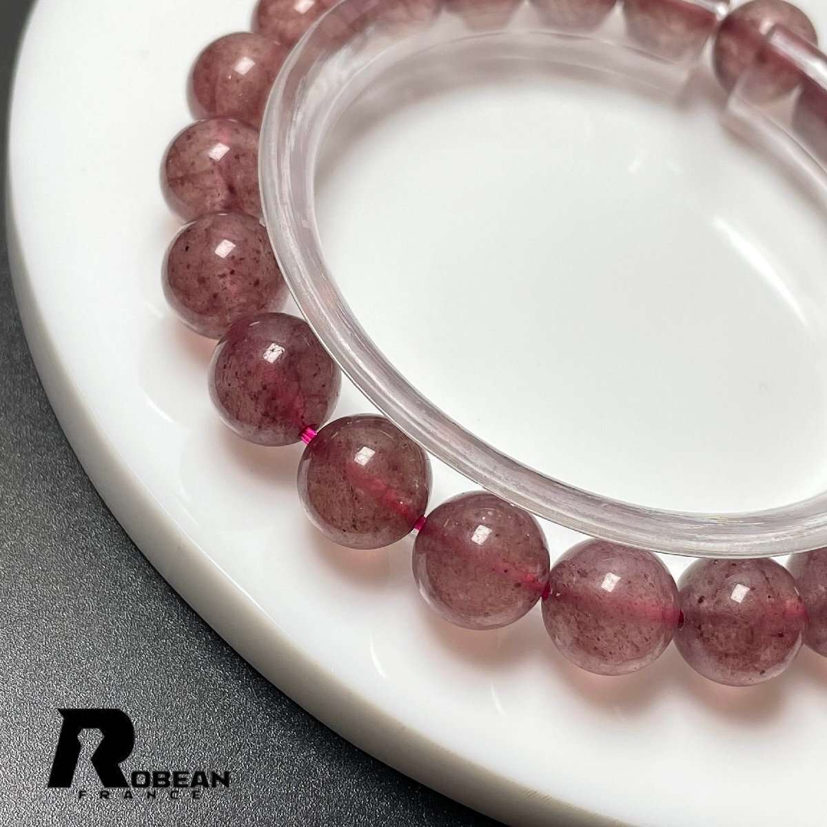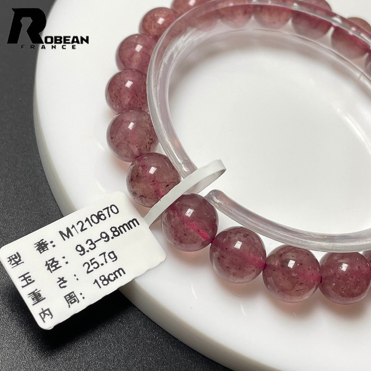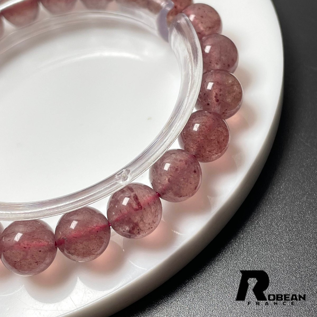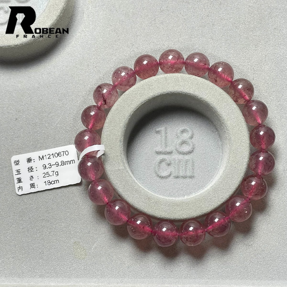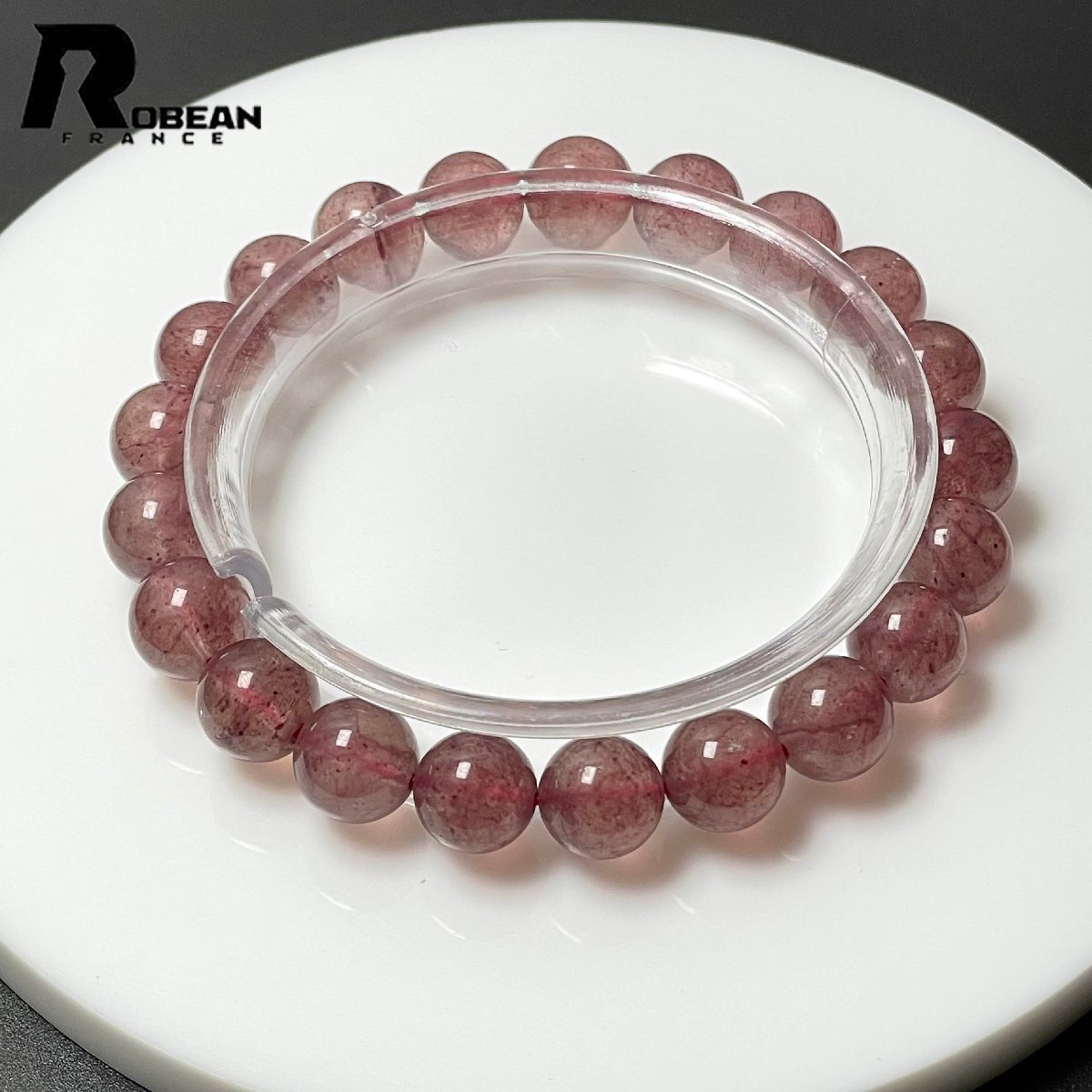 貴重 EU製 定価7万円★ROBEAN・ストロベリークォーツ★ブレスレット パワーストーン 天然石 苺水晶 綺麗 可愛い 9.3-9.8mm M1210670