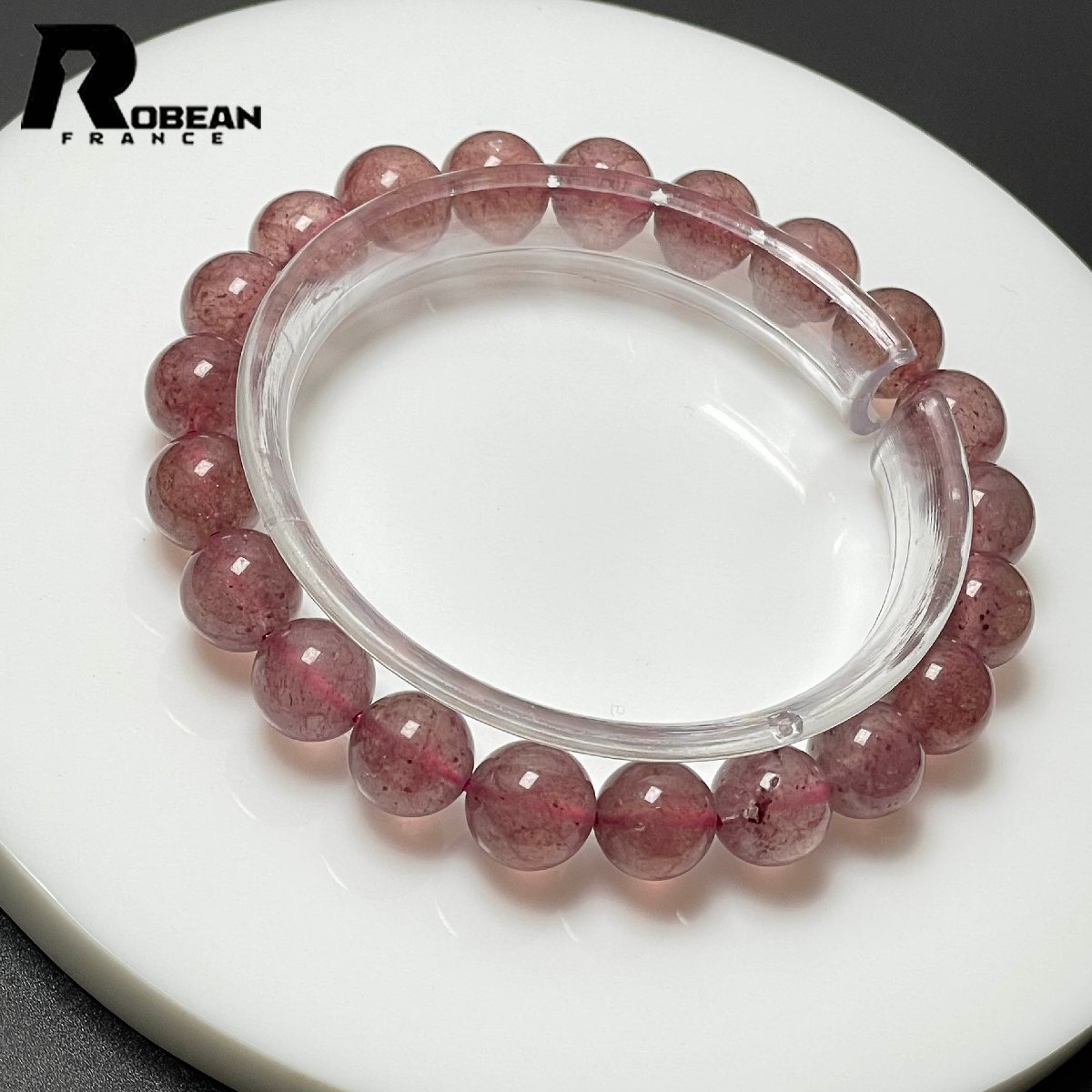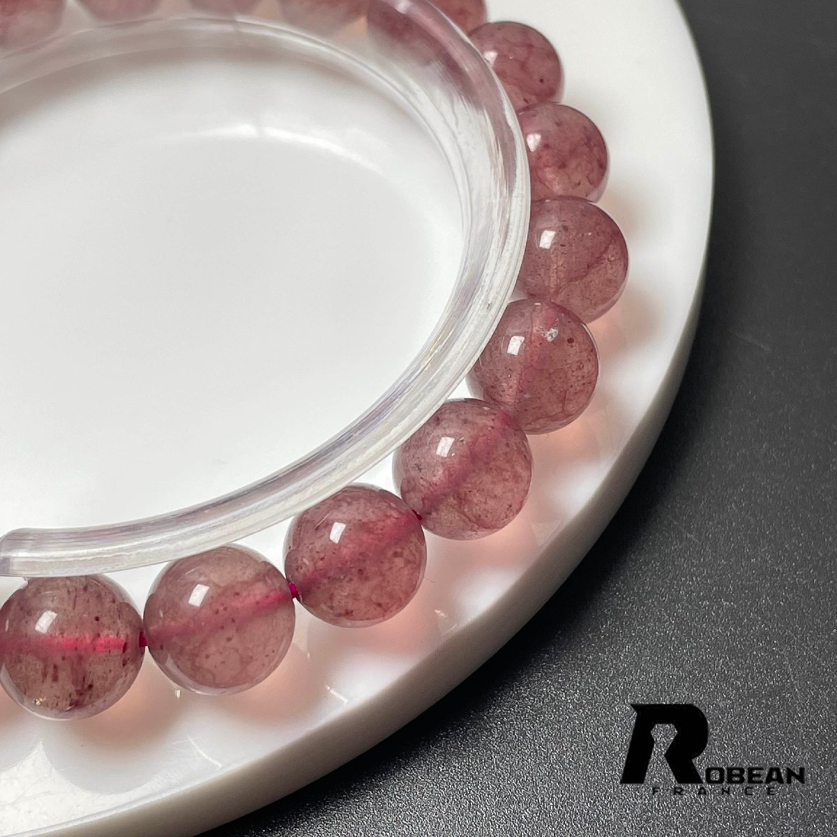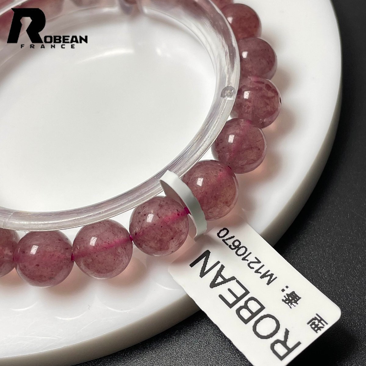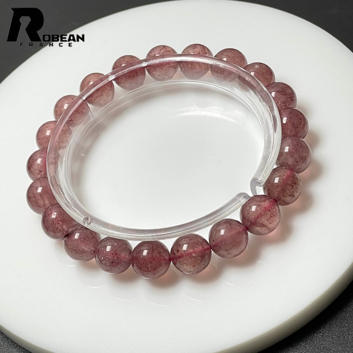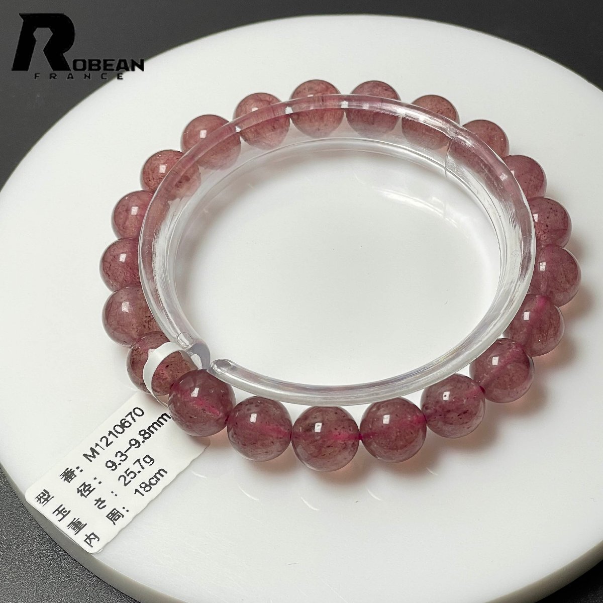 貴重 EU製 定価7万円★ROBEAN・ストロベリークォーツ★ブレスレット パワーストーン 天然石 苺水晶 綺麗 可愛い 9.3-9.8mm M1210670