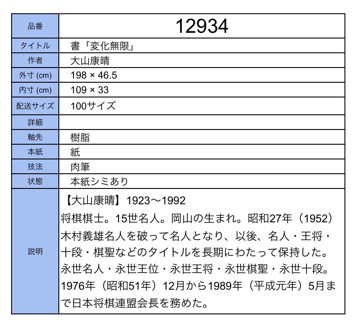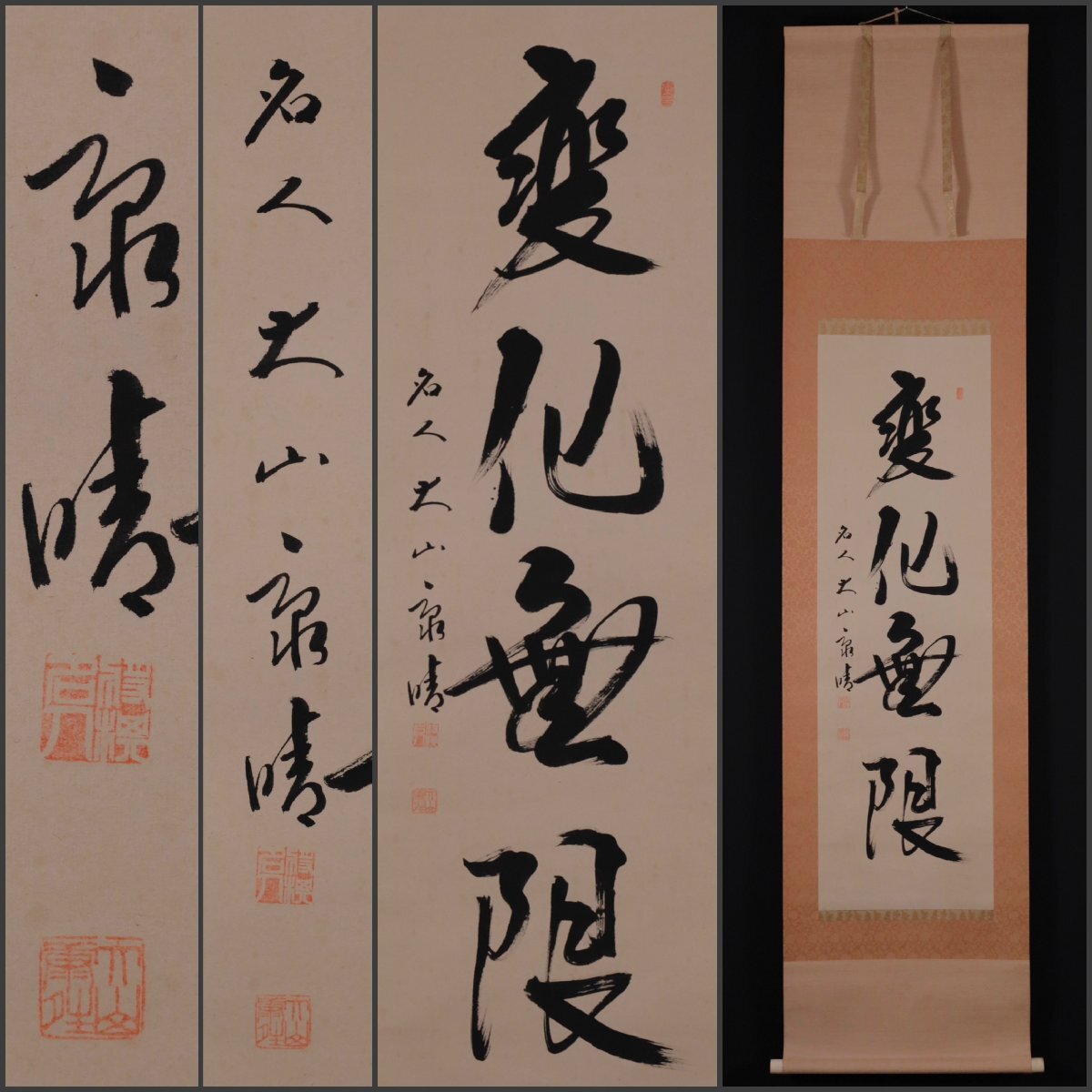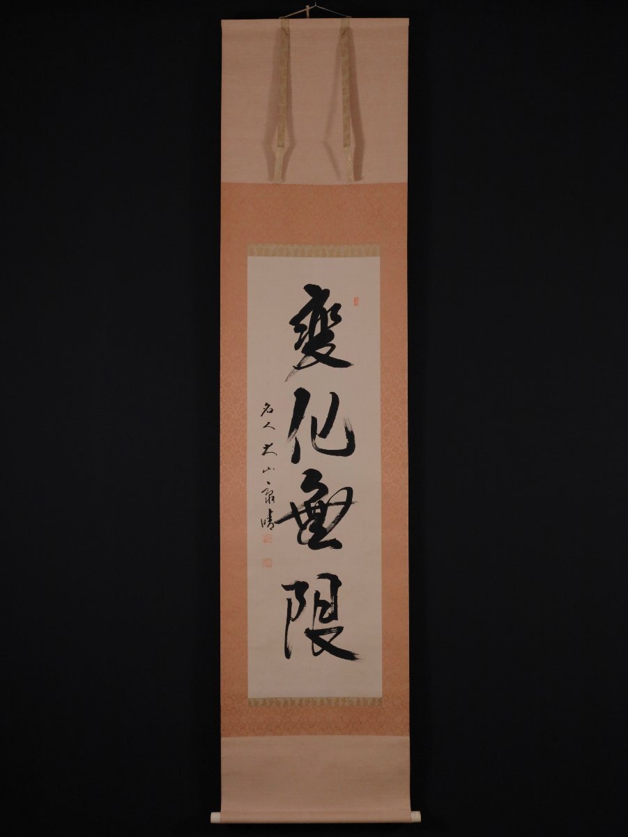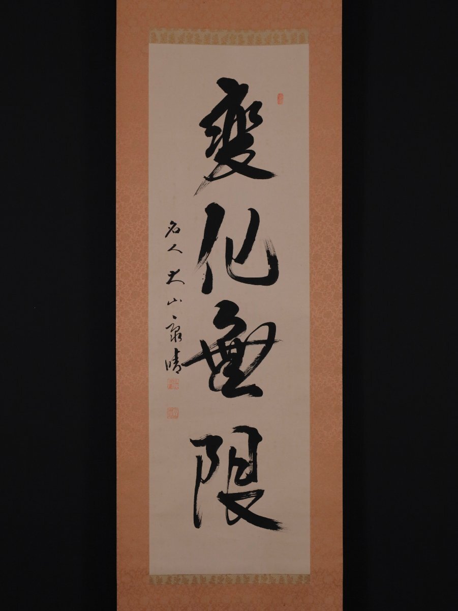 【模写】吉】12934 大山康晴 書「変化無限」 十五世名人 将棋棋士 日本将棋連盟会長 岡山県の人 茶掛け 茶道具 掛軸 掛け軸 骨董品