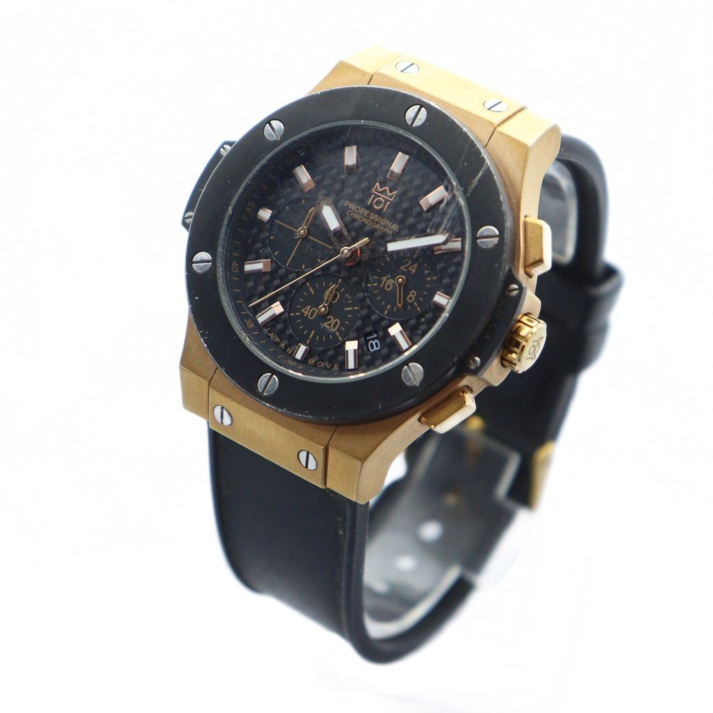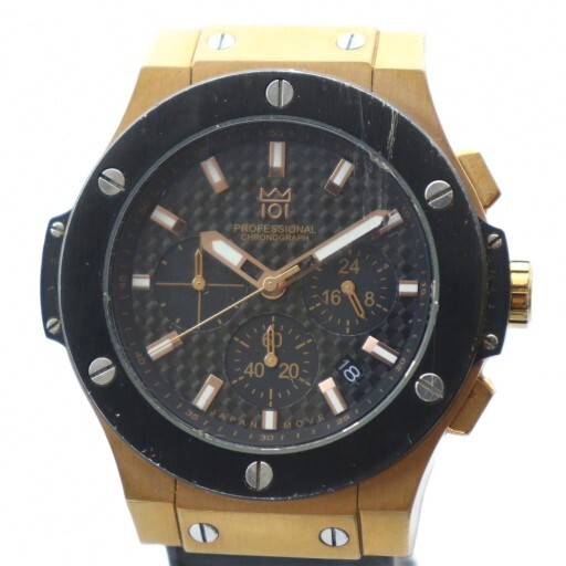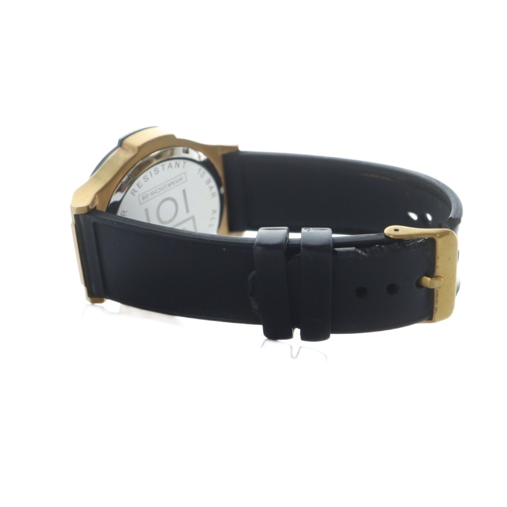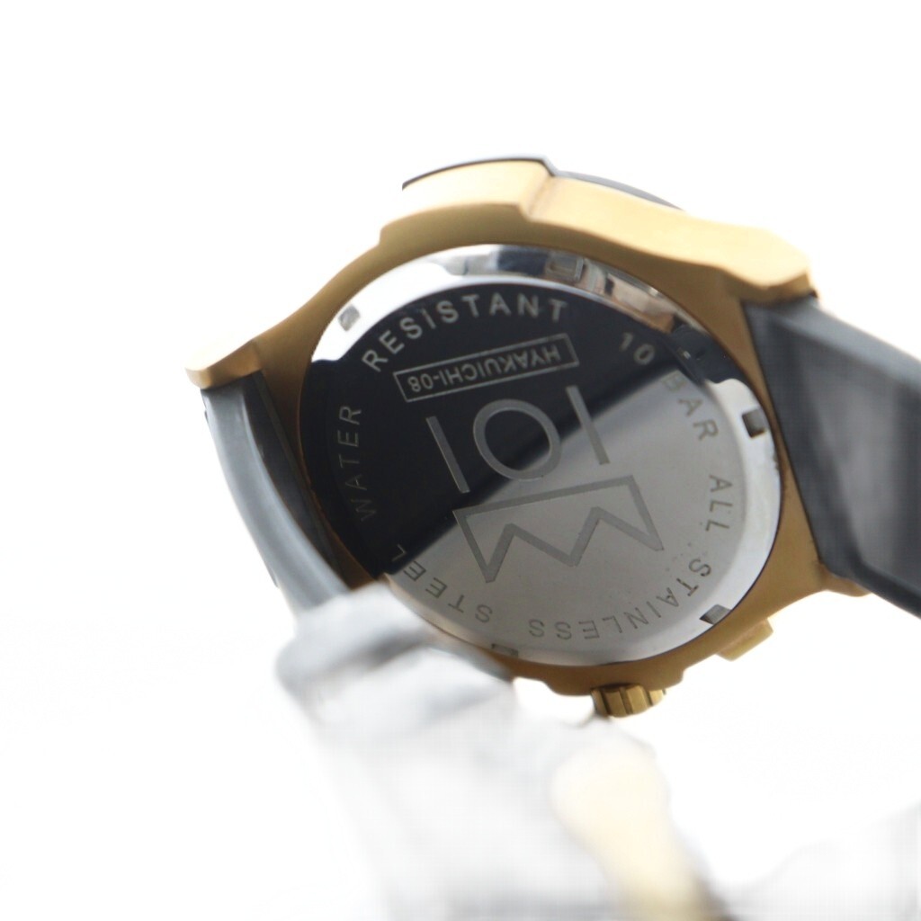 ヒャクイチ HYAKUICHI HYAKUICHI-08 腕時計 ウォッチ クォーツ クロノグラフ カレンダー付き 黒文字盤 ゴールドカラー 金色 /MQ メンズ