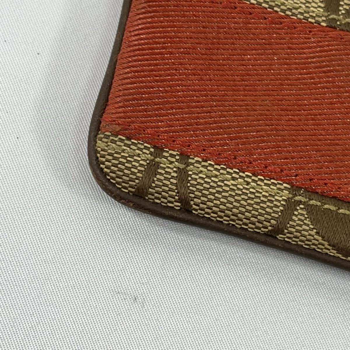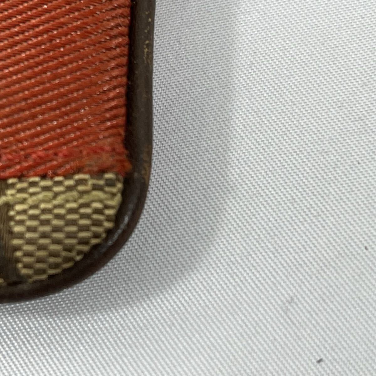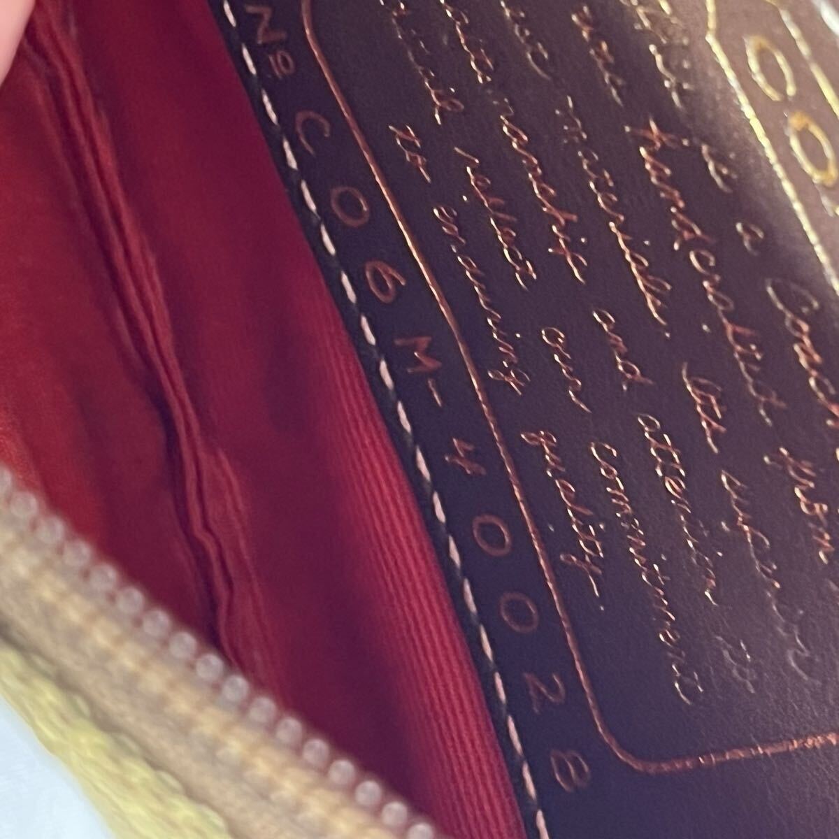 ・ブラウンとレッドのコントラストが魅力的なCoachのストラップ付きポーチ。