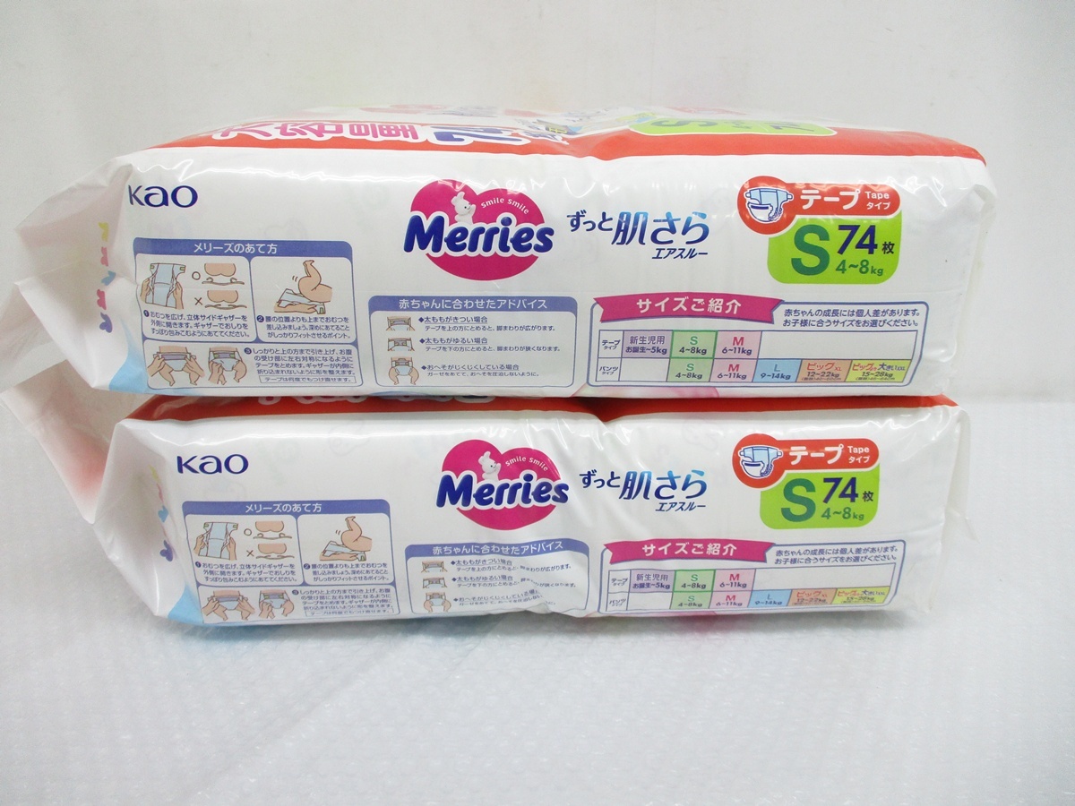 「4018BK 未使用 Merries メリーズ さらさらエアスルー Sサイズ 4-8kg テープタイプ 74枚×2 148枚 紙おむつ おむつ オムツ 花王 KAO 」です。 未使用品です。 個人の自宅保管品のため、保管時におけるスレ傷等があります。 写真のものがすべてです。 現状でのお引渡しになりますので、写真をご覧になり、ご理解の上、ご入札をお願いいたします。 ★☆★☆★ 送料 ★☆★☆★ 発送方法:ゆうパック 全国一律:1850円(沖縄のみ2490円) 下記の発送詳細を必ずご覧ください。 | |