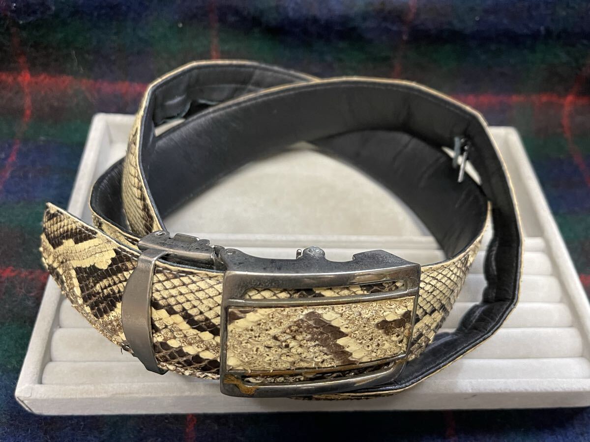 ニシキヘビ はベルト パイソンベルト 錦蛇 ニシキヘビ パイソン 本革 レザー ベルト メンズ 蛇革 バックル式 ヘビ革ベルト