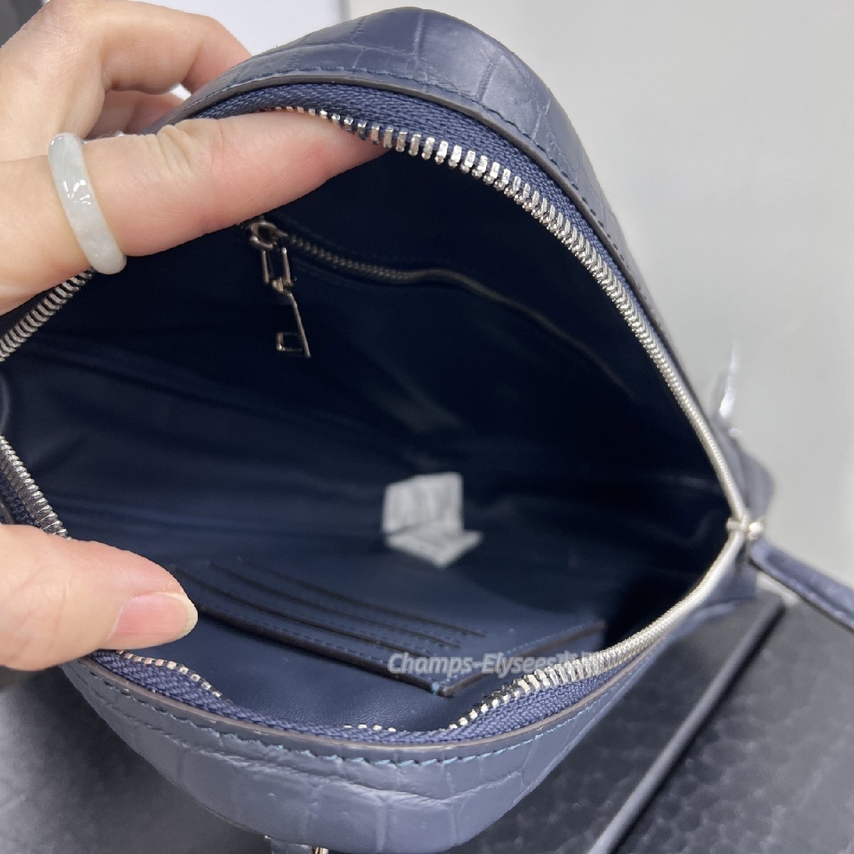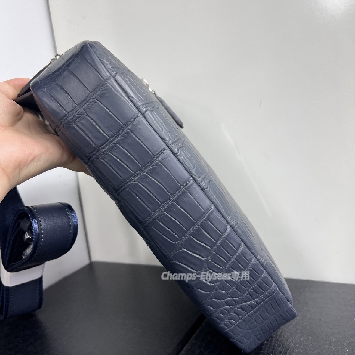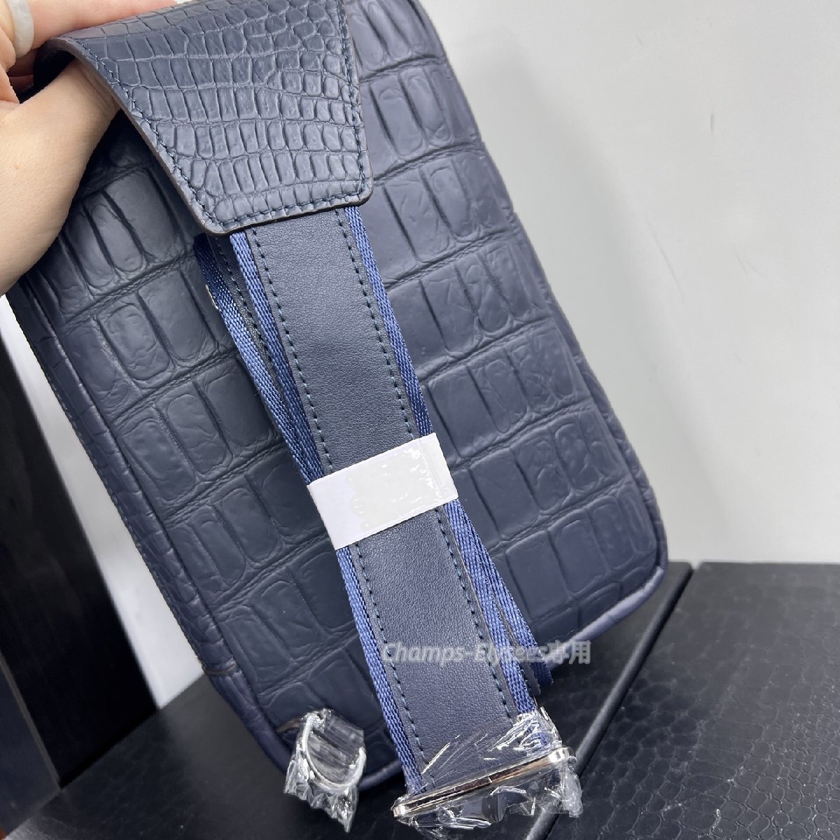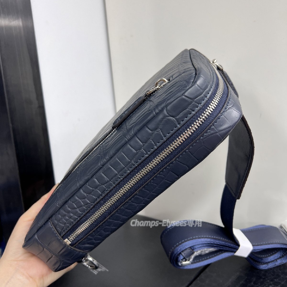 厳選 上品レザー 本物クロコダイル 品質保証 メンズバッグ 本革 ワニ革 ボディバッグ  肩掛け 紺