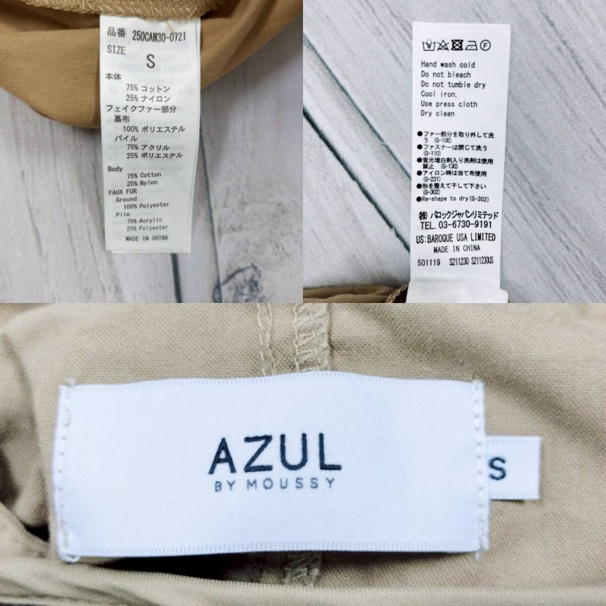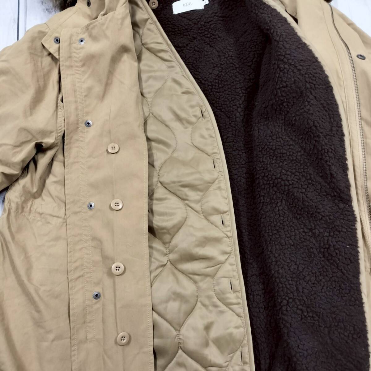 フェイクファー付 AZUL BY MOUSSY アズールバイマウジー レディース モッズコート フード付 ベージュ Sサイズ 防寒 アウター カジュアル