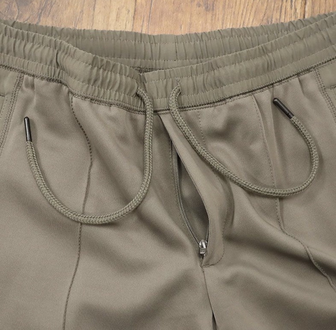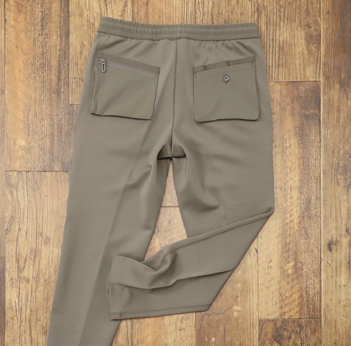 仕様:ウエストゴム・ドローコード(一周)、ピンタック、3ポケット、止水ジップポケット、ジップフライ