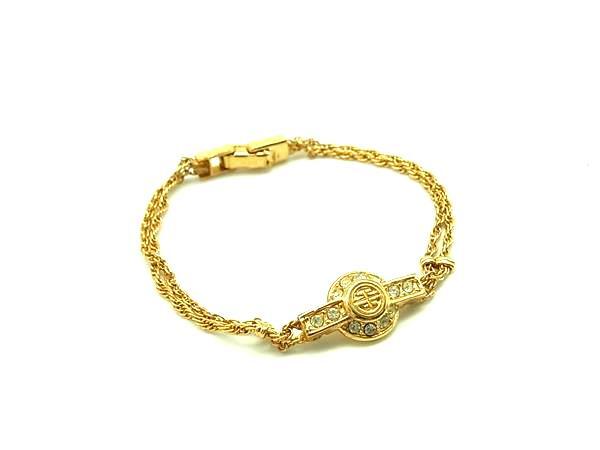 ■美品■ GIVENCHY ジバンシィ ヴィンテージ ラインストーン ブレスレット バングル アクセサリー レディース ゴールド系 DJ4537