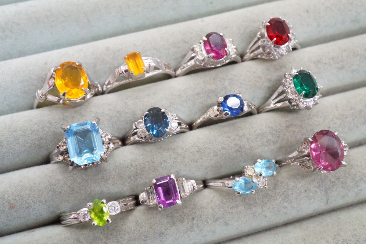 C217 昭和レトロ 色ガラス リング 指輪 ヴィンテージ アクセサリー 大量 セット まとめて おまとめ まとめ売り 装飾品