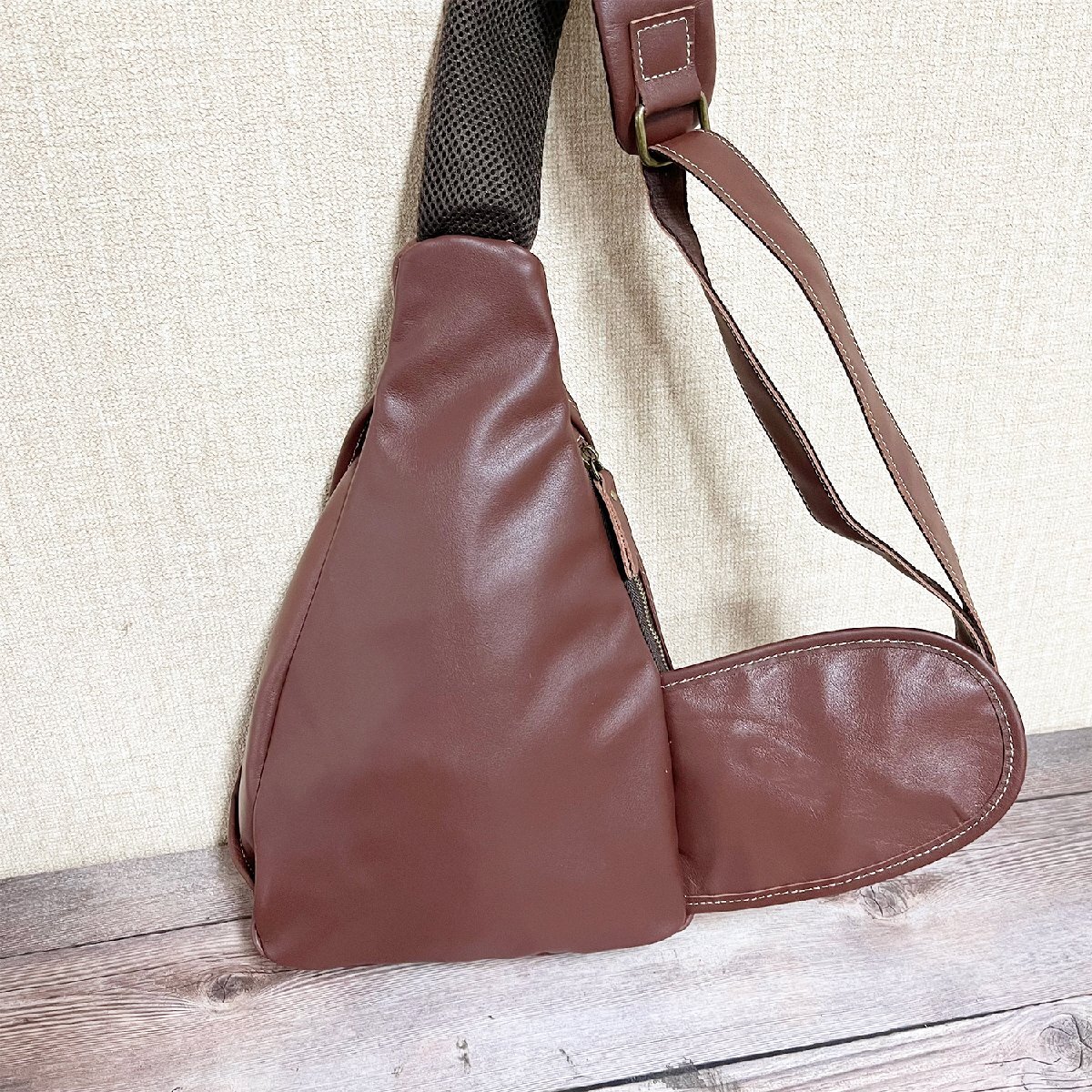 上質なレザーを採用し、キメが細かくて、柔らかいと軽く手触りの良い特徴を持っているボディバッグです。耐摩擦性があるだけでなく、防水性に優れたので、雨天でも水が中身に染込みにくいです。カジュアルなデザインの高級斜め掛けバッグで、軽くて持ちやすいです。