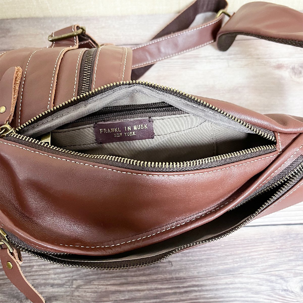 人気 ボディバッグ 定価12万 FRANKLIN MUSK・アメリカ・ニューヨーク発 本革 柔らか 撥水 個性 レトロ系 斜め掛け ビジネス 日常