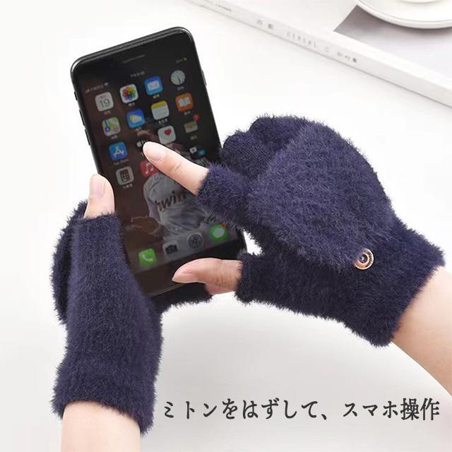手袋 レディース 暖かい スマホ対応 ミトンカバー 指出し 2way ふわふわ おしゃれ 防寒 指なし手袋【グレー】