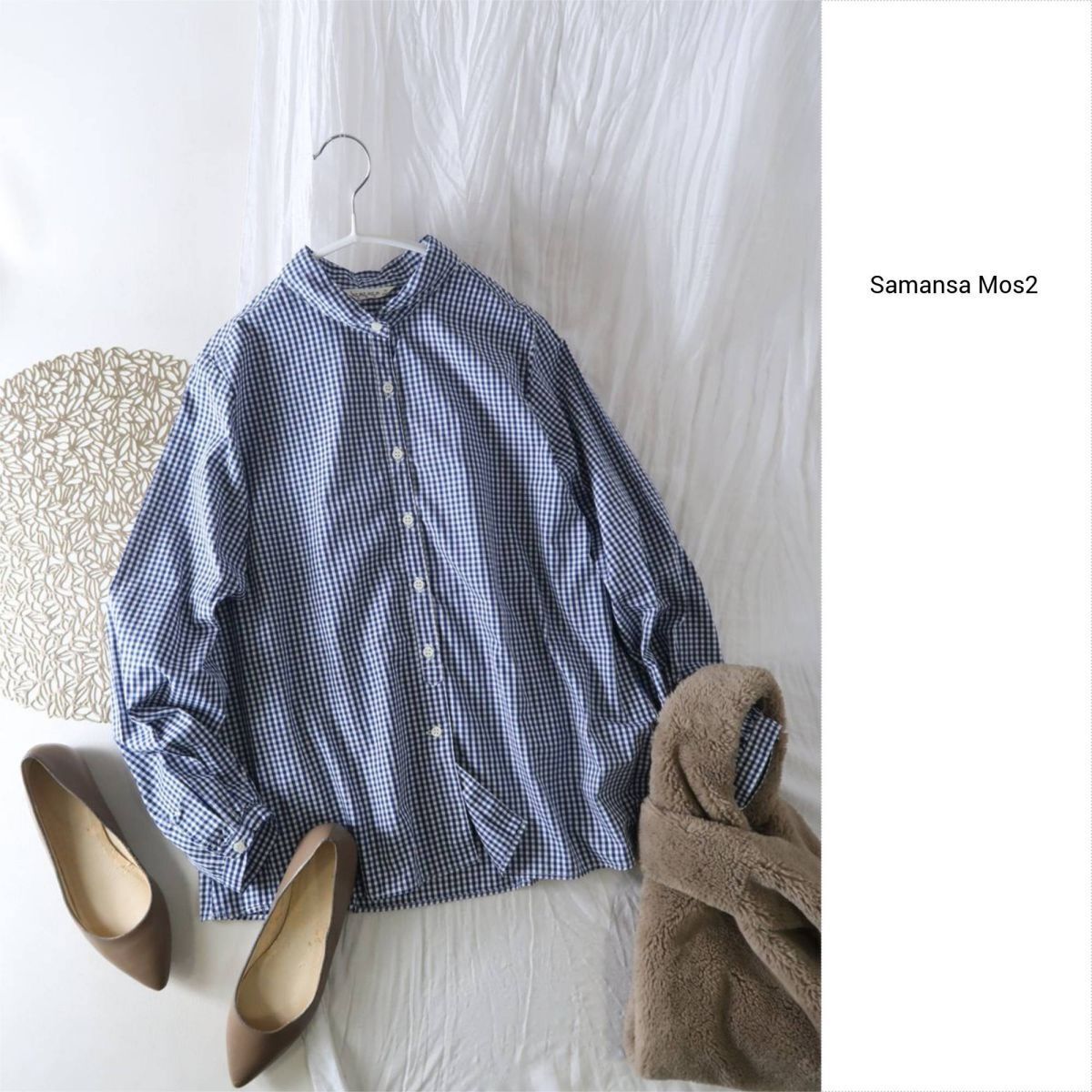 サマンサ モスモス SM2☆洗える 丸襟 ギンガムチェック ブラウス Mサイズ 日本製☆A-O 5235
