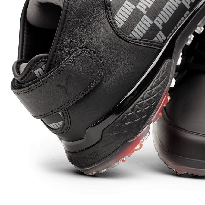 サイドに施されたプーマロゴデザイン、踵のベルト、アウトソールにプーマキャットなど、随所に