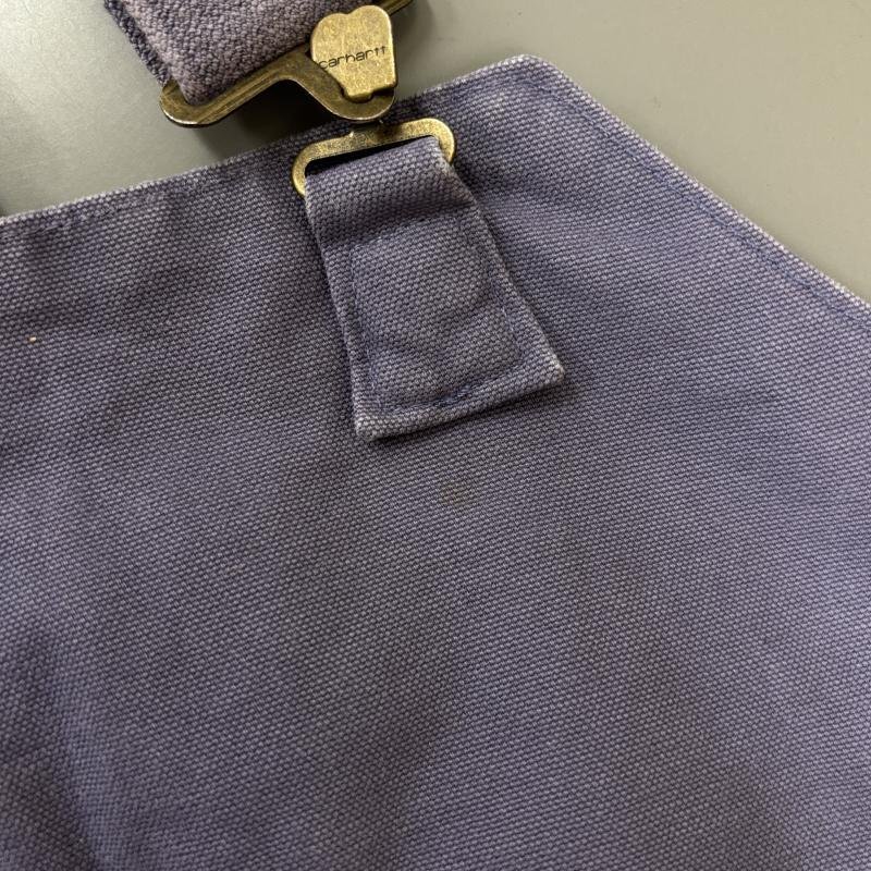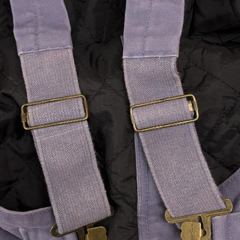 状態:全体にアタリ擦れ汚れ。肩ストラップにヤケ。左バックポケット下部にサイズテープ跡あり。 商品名補足:ウエストゴム つなぎ 薄紫 ライトパープル その他:サイズ表記は「14×30」です。