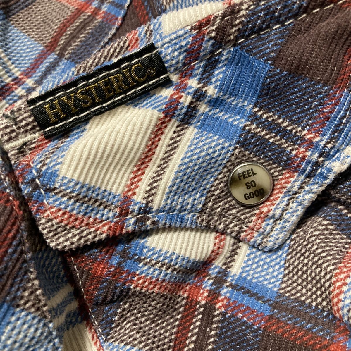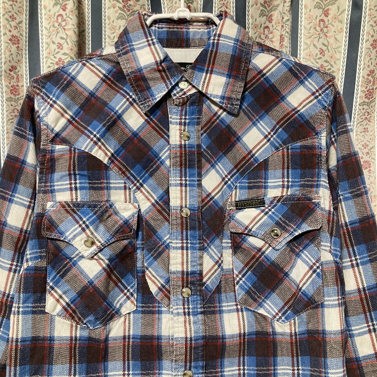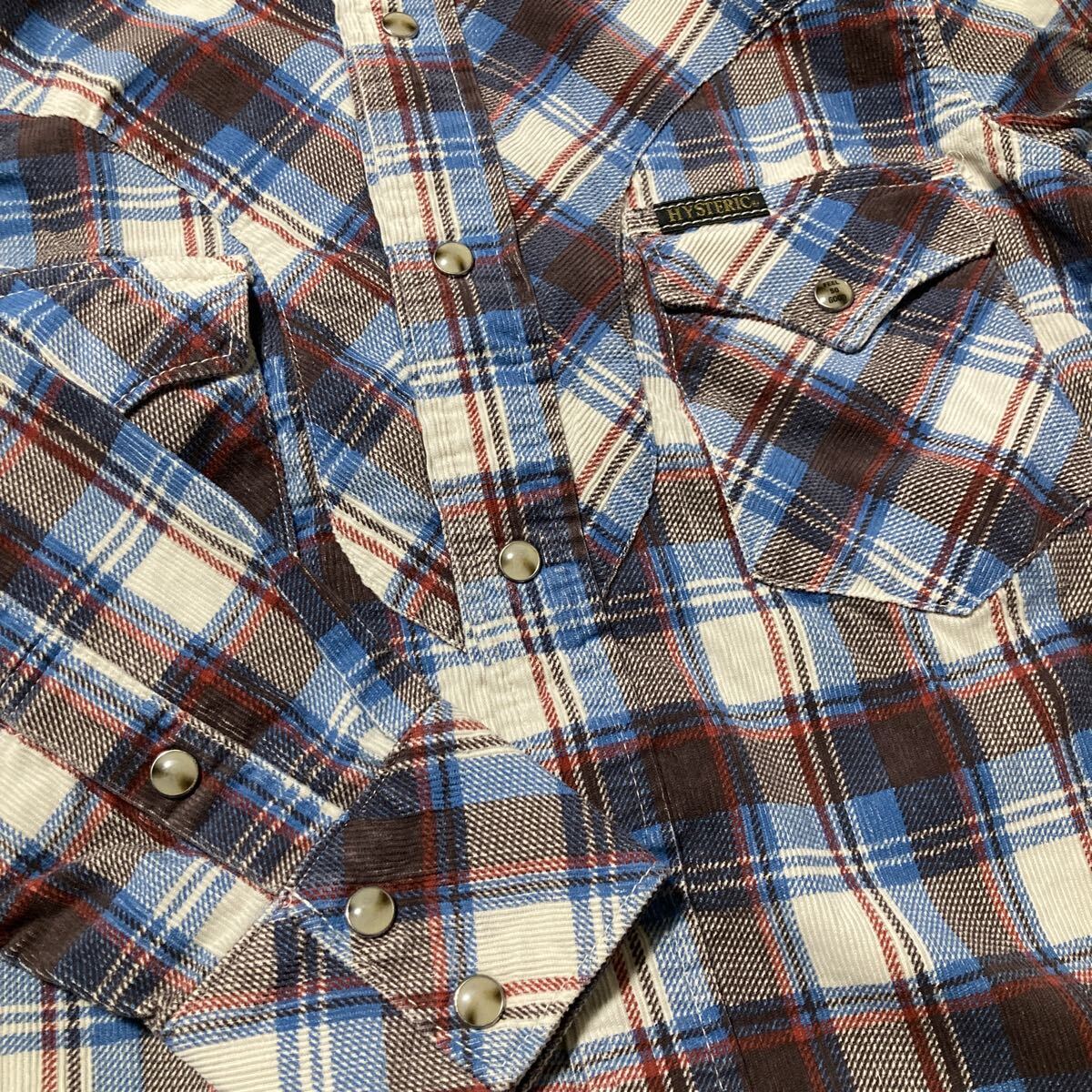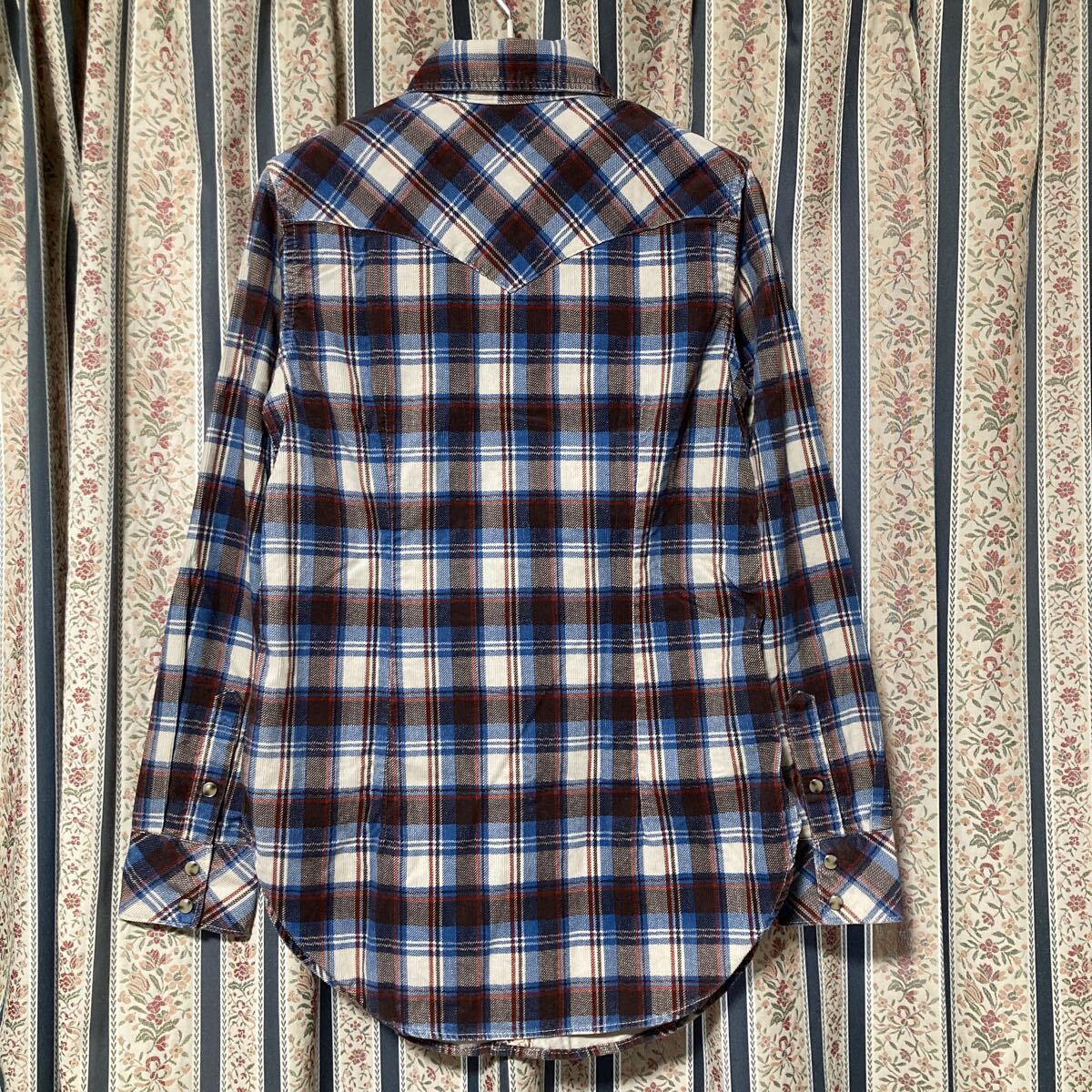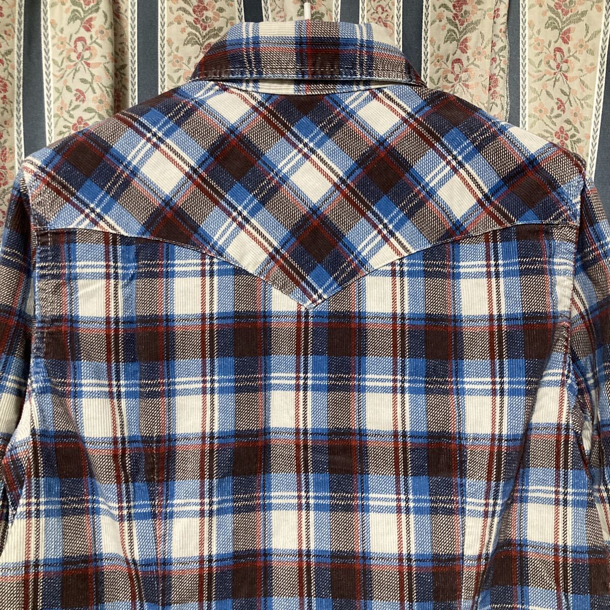コーデュロイ素材のウエスタンチェックシャツ。