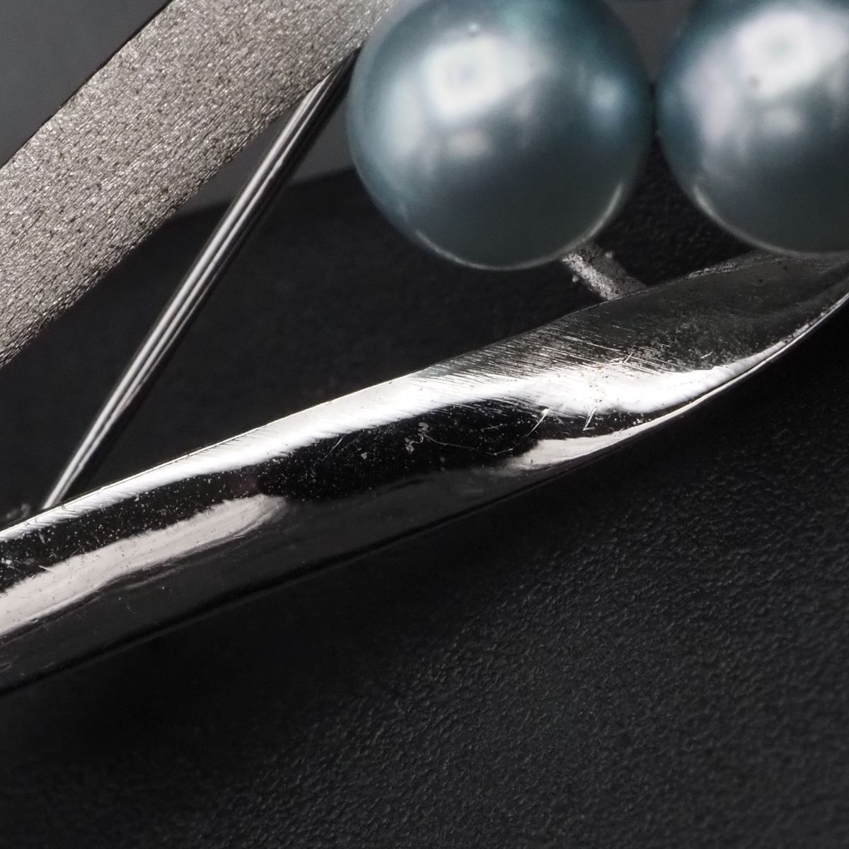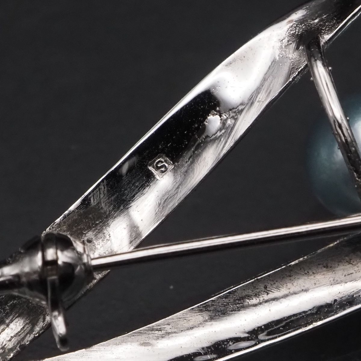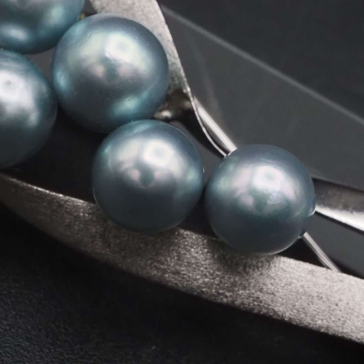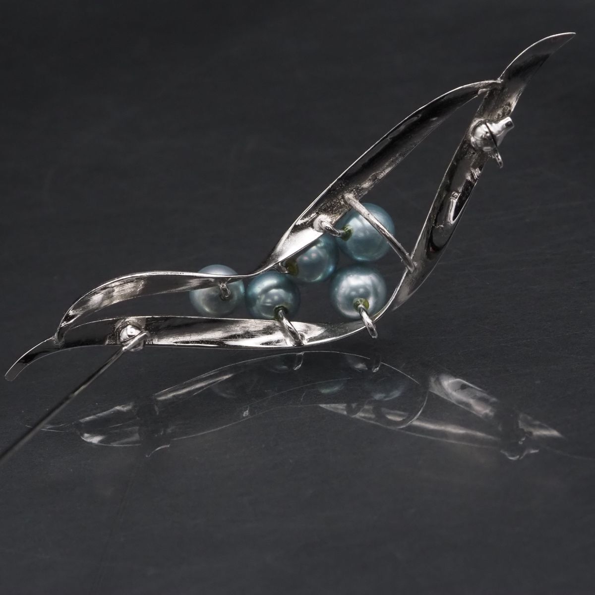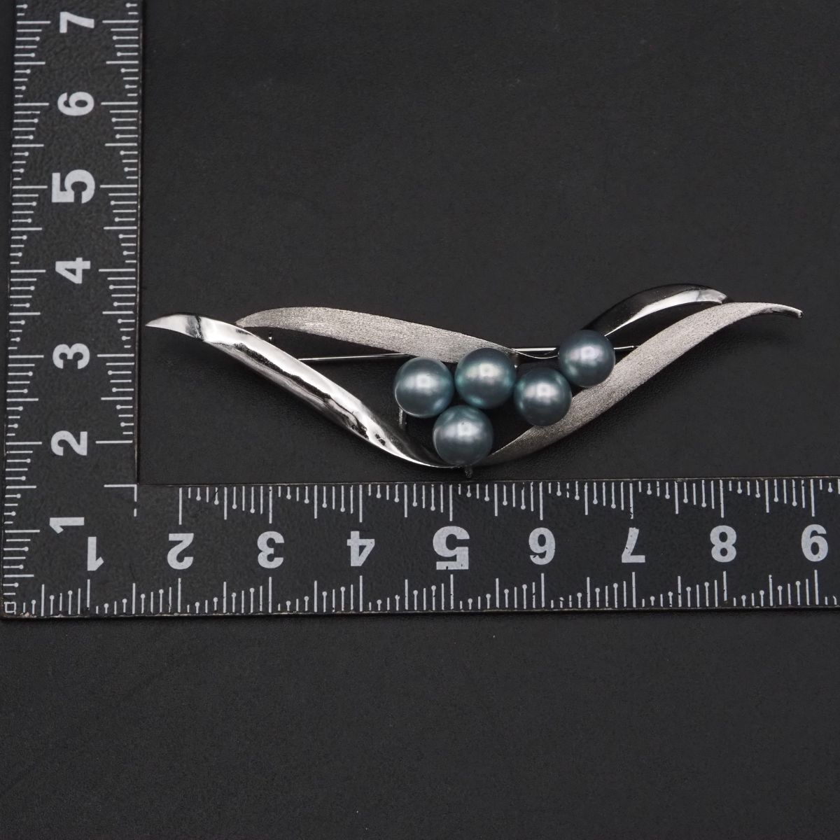 F801 本真珠 6.3-6.9mm5珠 パール S刻印 ブローチ ブルー系カラー デザイン シルバー コサージュ 6月誕生石