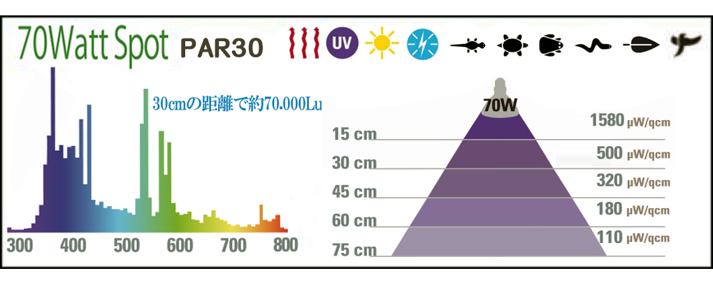 ・圧倒的紫外線量 安定器内蔵型UVランプと比較し、約7倍(同W数比較)の紫外線量。