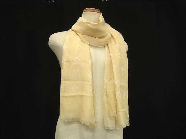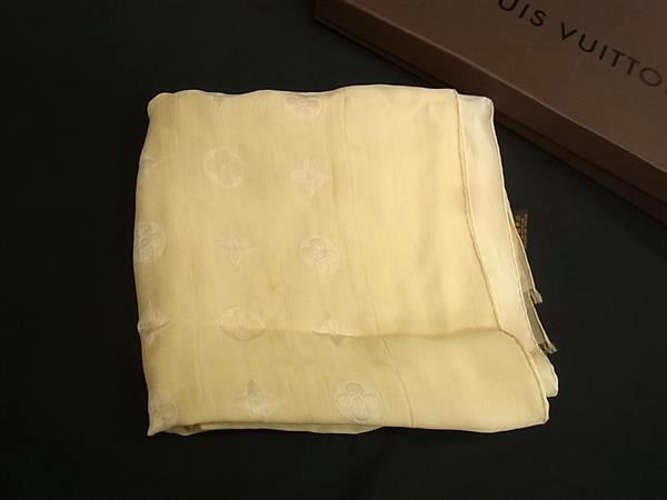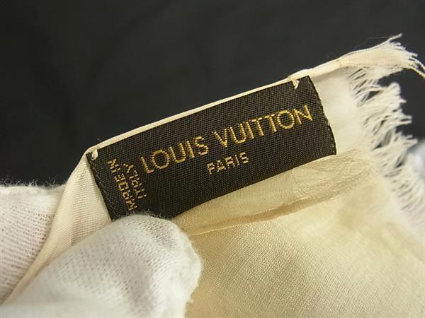 1円 LOUIS VUITTON ルイヴィトン 401910 シルク×アセテート 大判 スカーフ ストール ショール レディース アイボリー系 FS4769