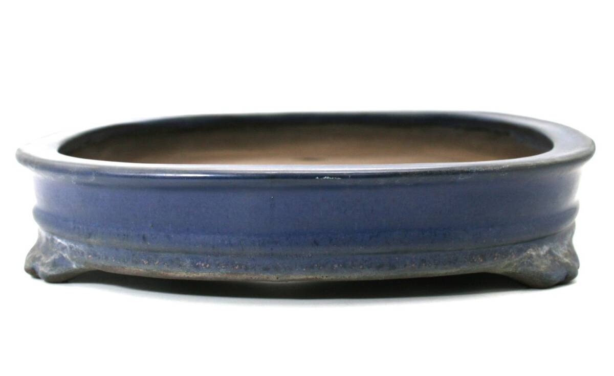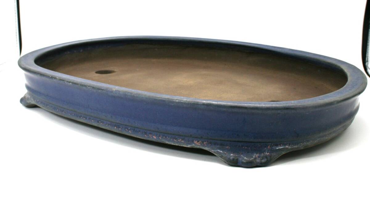 陶翠造 瑠璃釉窯変 外縁下帯雲足楕円鉢 横幅37.5㎝ 奥行27㎝ 高さ5㎝ 盆栽鉢 | |||