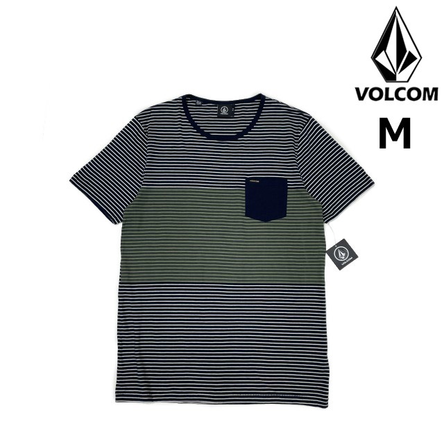 売切り【正規新品】VOLCOM ボルコム◆半袖 Tシャツ スケート サーフ ストーンロゴ 男女兼用(M)紺 カーキ ボーダー柄 250617