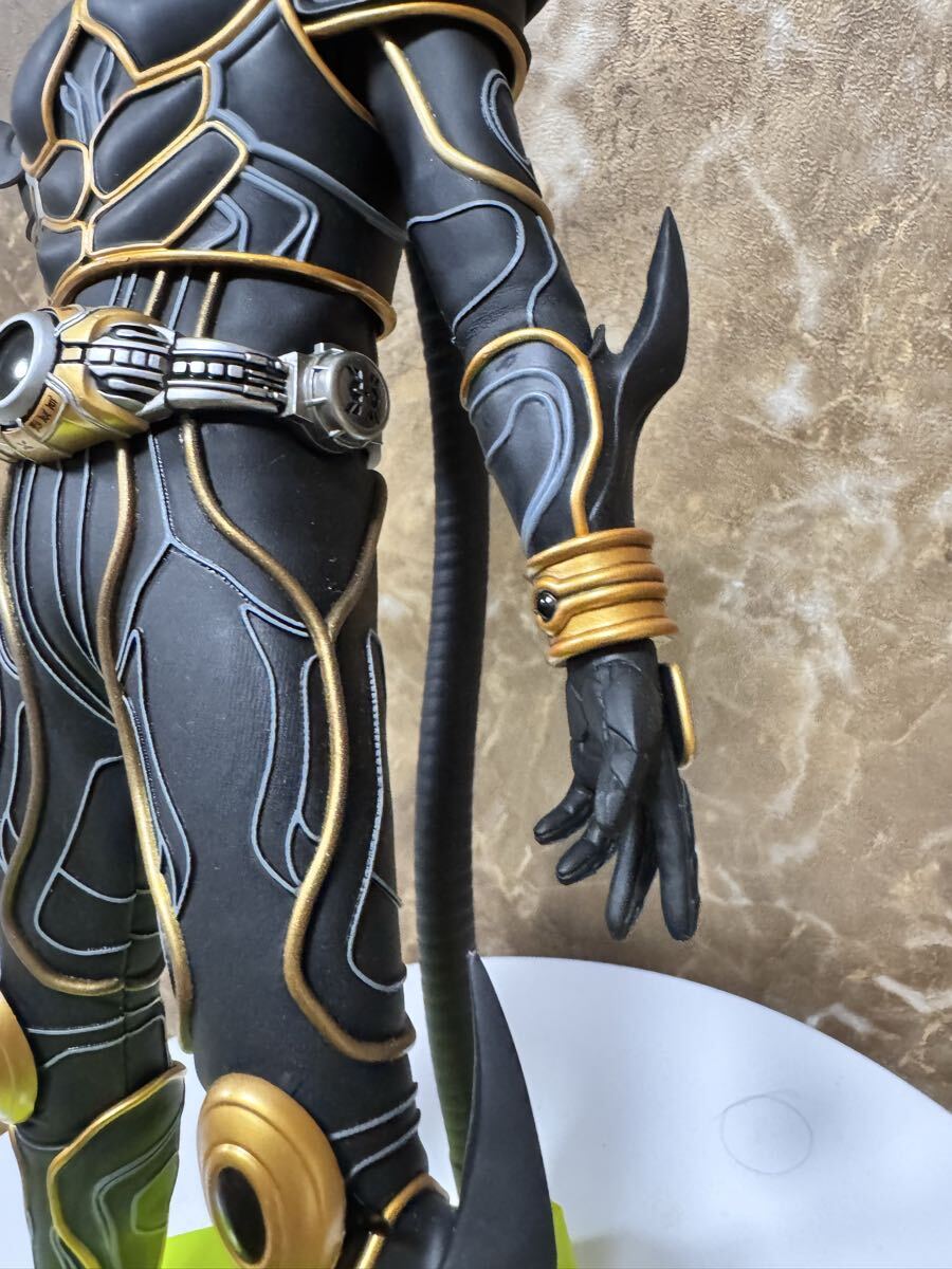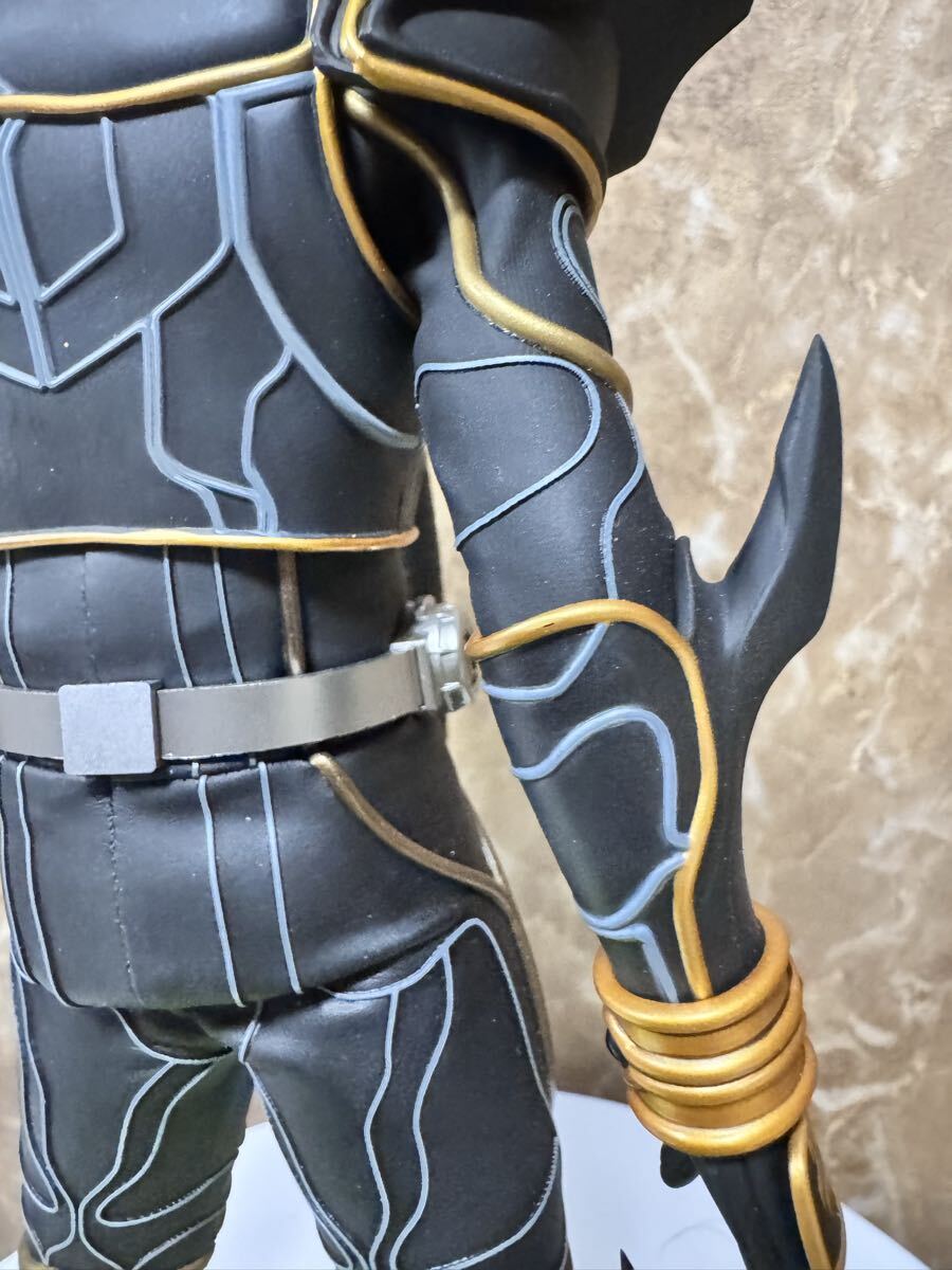 クウガアルティメットは稼働させず大事に飾っていてスーツの劣化も少ないですが、残念ながら足首がとても折れやすいやしくこの品も可動させていないのにボロっと両足が折れました。