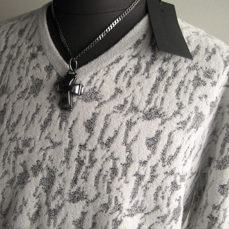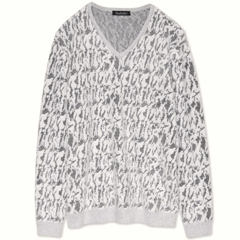■アニマルパターンの迷彩柄をモールヤーンで編み上げたVネックのプルオーバー