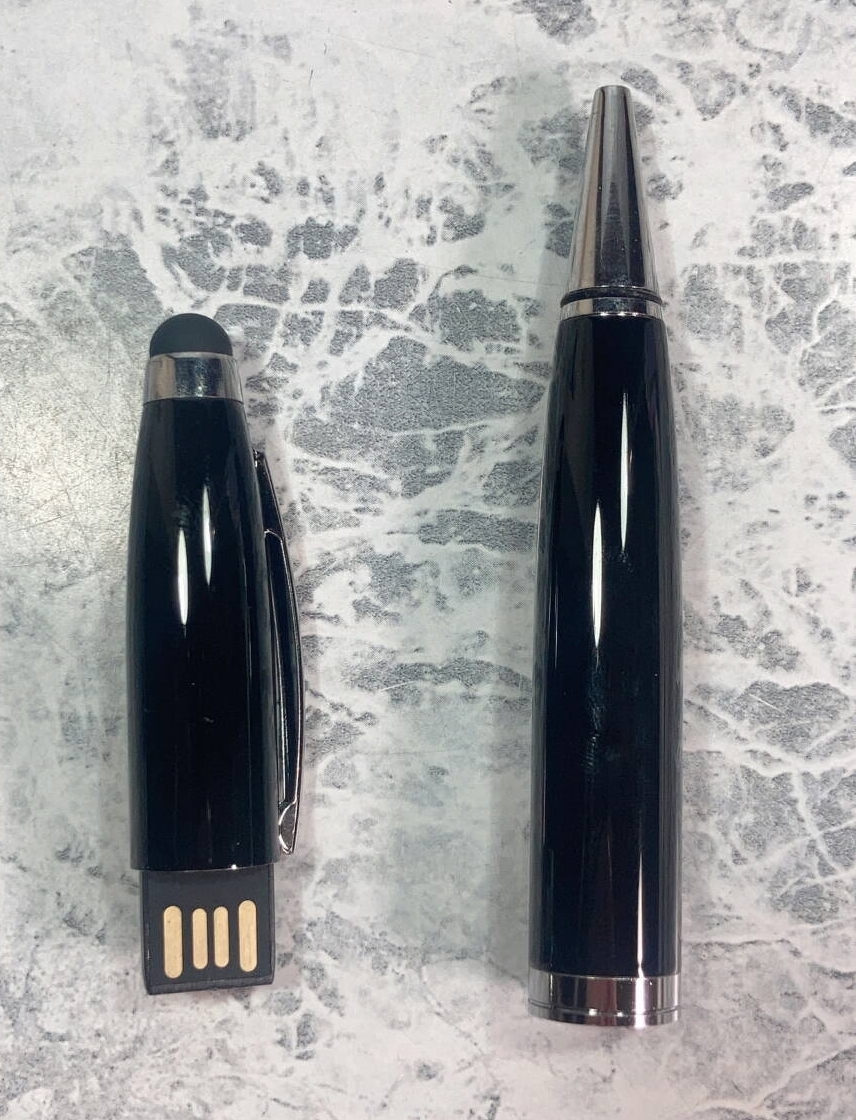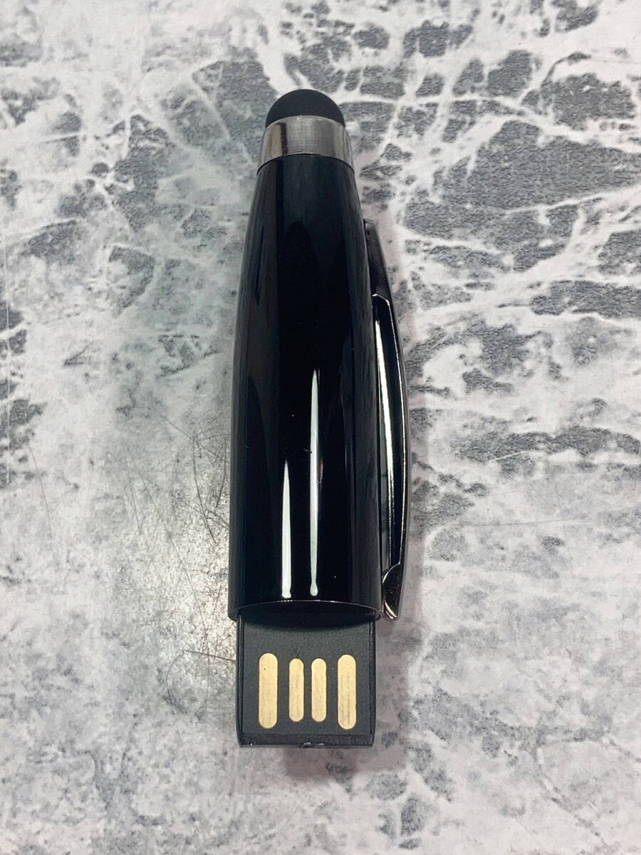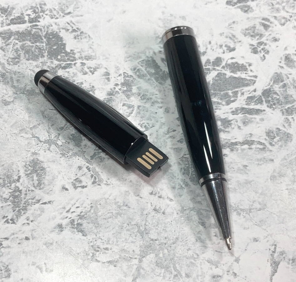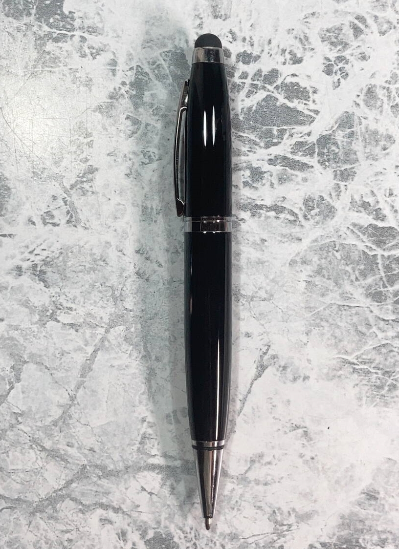 ●ボールペン状態のおおよそのサイズは、長さ14㎝、重量16gとなります。中央付近から2つに分解することで、片方をUSBメモリとして使用することができます(容量約30GB)。