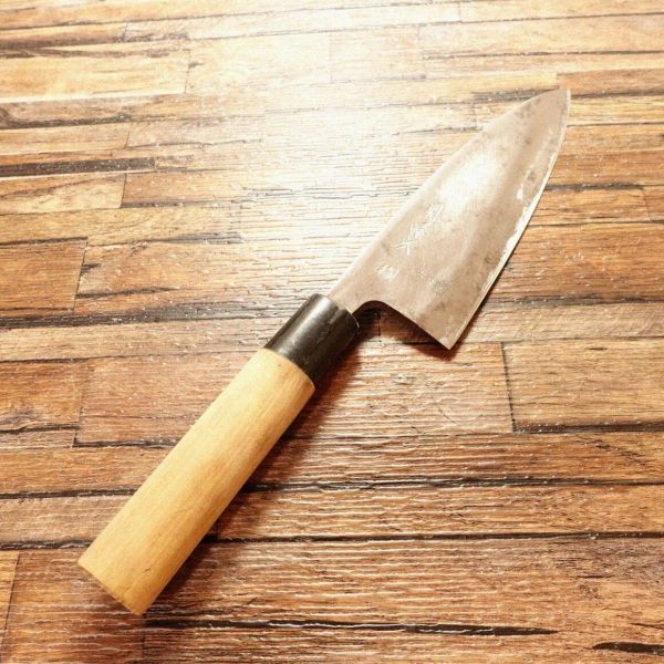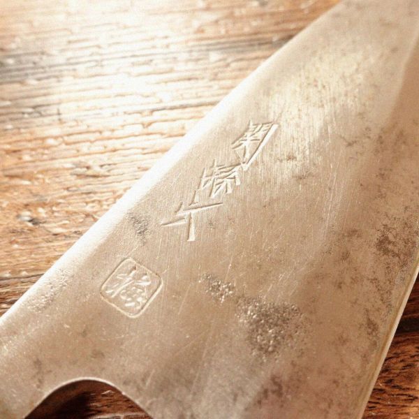 保管時のハガネ特有の黒ずみは多少見られますが、研いだ刃先はキレイな鋼の銀色が出ています。研ぎも入っていますので、到着後すぐにお使いいただけます。開梱時にはお気を付けください。もちろん研ぎ代込みのお値段です。
