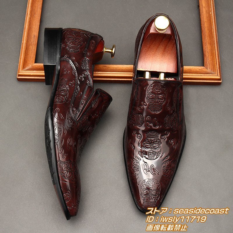 最高級★ビジネスシューズ 超希少 レザーシューズ 本革 鰐柄 職人手作り 手塗仕上げ メンズ 紳士靴 フォーマル 牛革 革靴 レッド 25.0cm