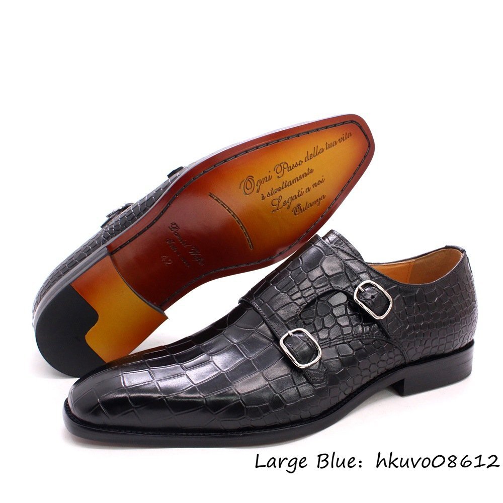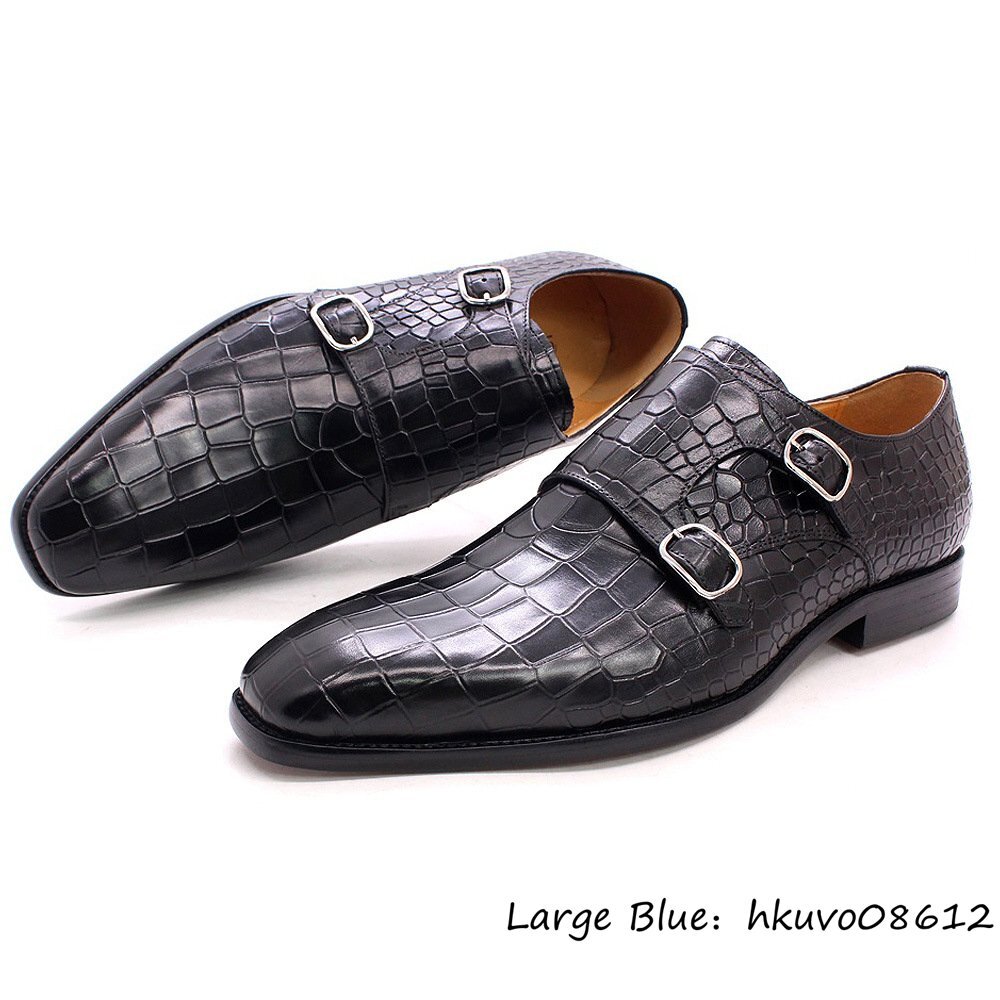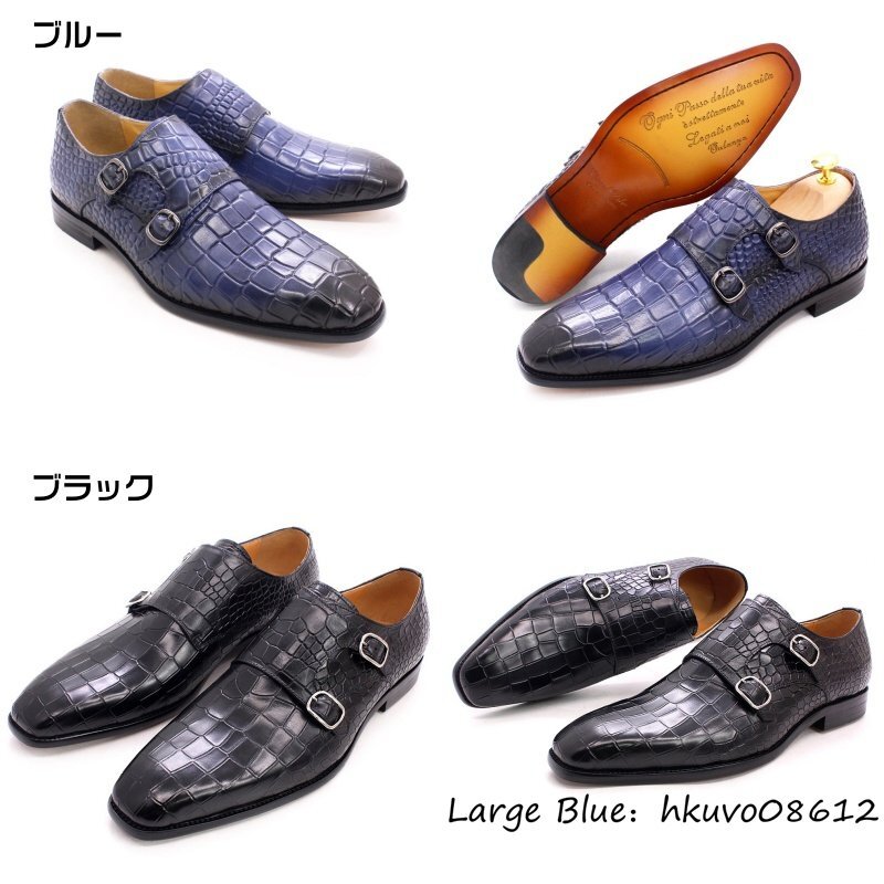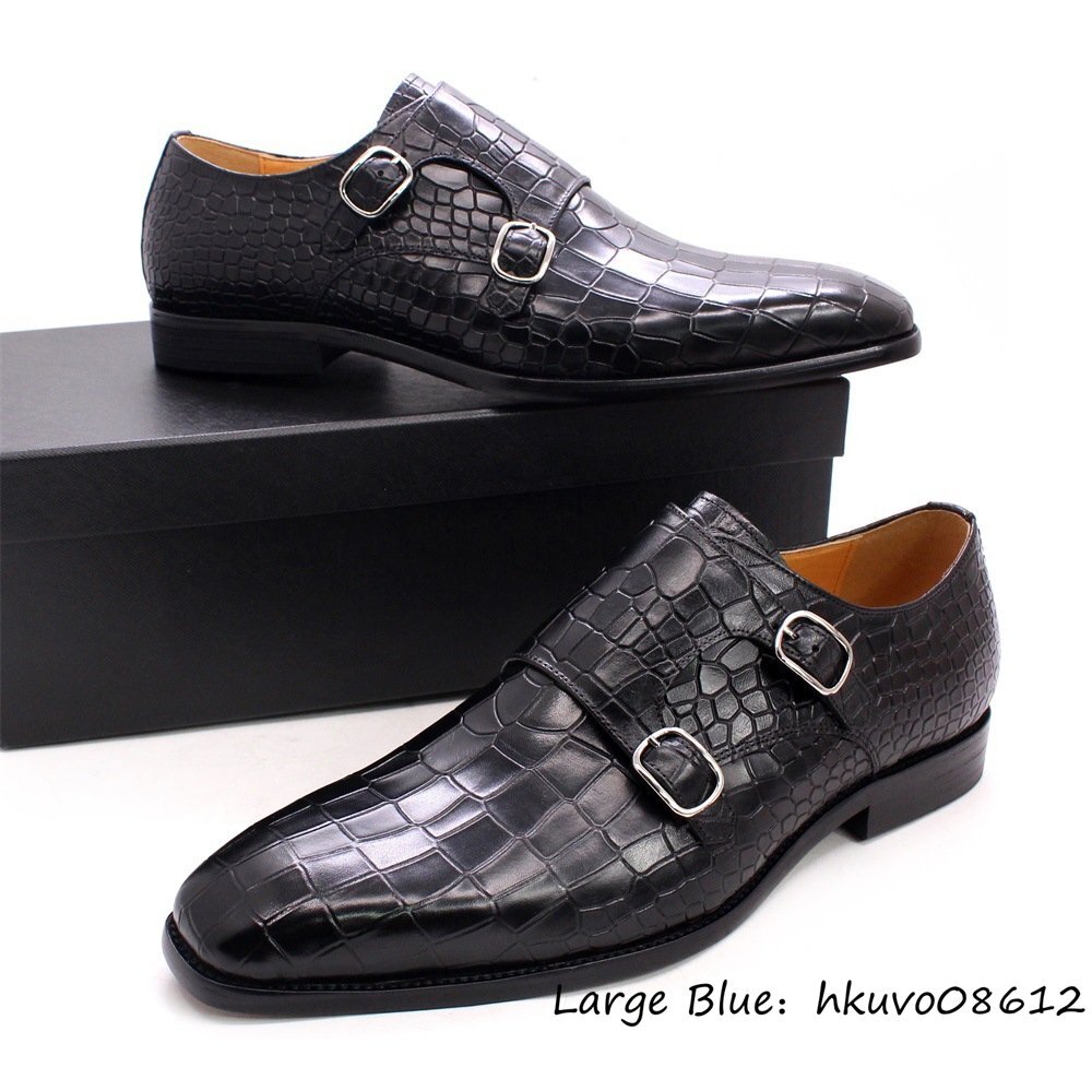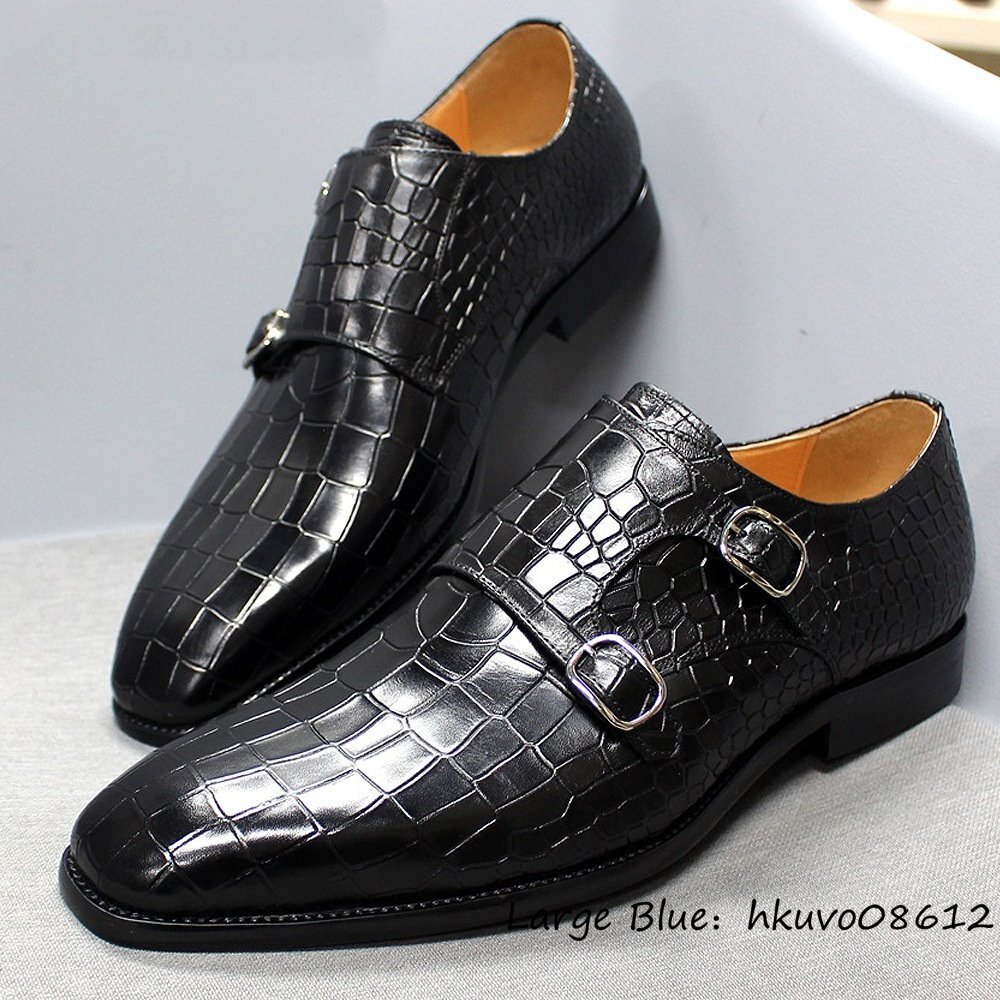 最高級&定価10万 ダブルモンクストラップ 本革 職人手塗り上げ 鰐柄 レザーシューズ メンズ ビジネスシューズ 紳士靴 革靴 ブラック 25.0cm
