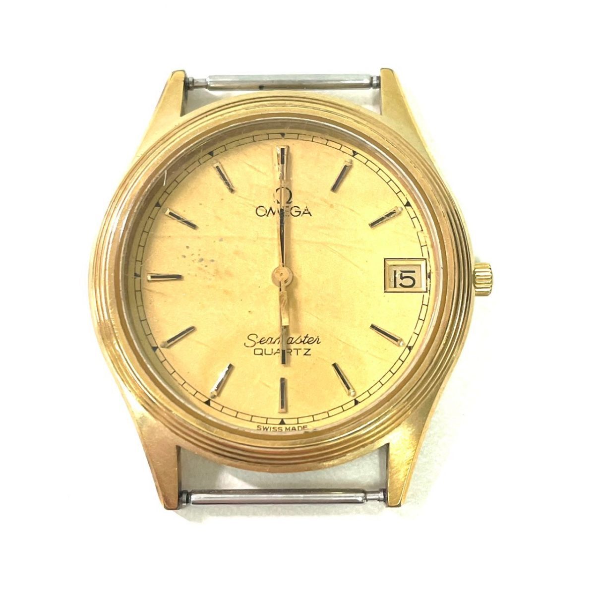 【ジャンク品】OMEGA オメガ Seamaster シーマスター フェイスのみ ゴールド文字盤 QZ 腕時計 IT9TC8DYZUSN B20