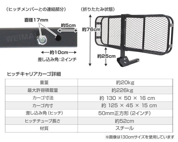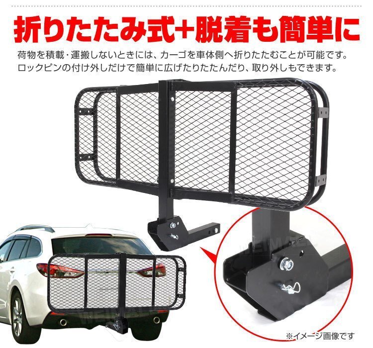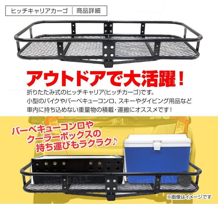 マリンスポーツで濡れたウェットスーツやフィン、 またははクーラーボックス、バーベキューコンロなどのキャンプ用品や 汚れ物等の車内に積むには厳しい物を積むのに便利なヒッチキャリアカーゴです。 車の後ろに取り付けられます。 キャンプでも給水場に早変わり、 キーパーや水缶等の水物を置く場所として活用すると便利です♪ 本体にはリフレクターテープ付きなので、荷物を積んだ際の被視認性も問題ありません! 物を載せないときは、車体側へ折りたたむことができます。 【商品仕様】 最大許容積載量(約):226kg 荷台サイズ(約):幅130×奥行き50×厚さ16cm 素材:スチール製 ヒッチサイズ:2インチ(50mm)正方形 ヒッチチューブ長さ(約):520mm 重量(約):20kg |