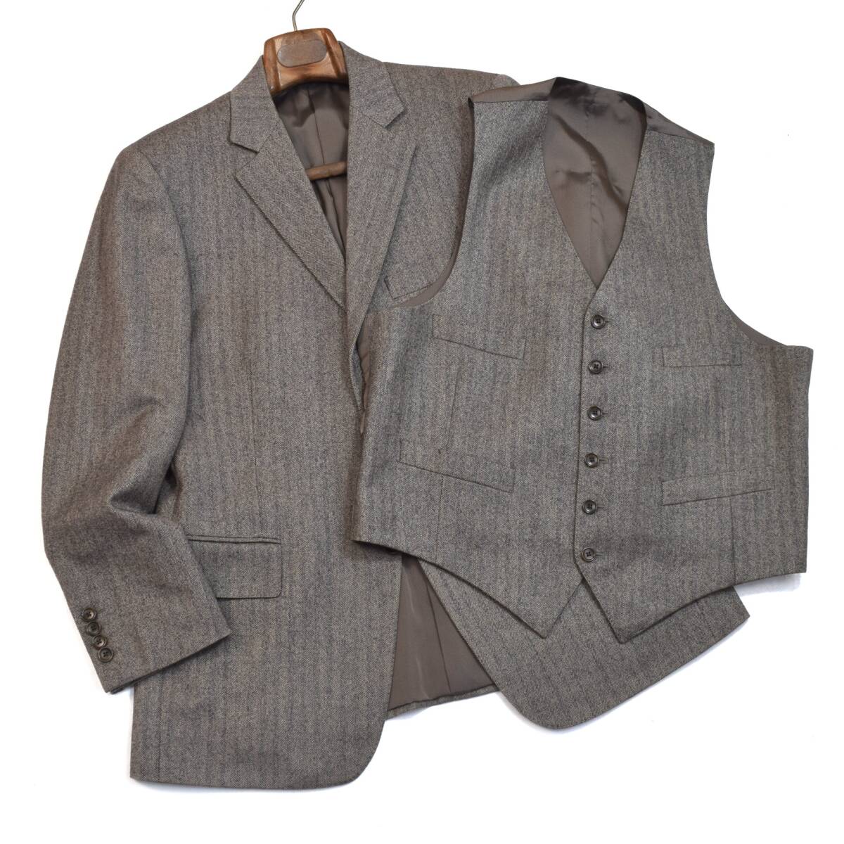 完全別格!!至宝のコレクション◎!!!最高峰ブルックスブラザーズ「1818」高貴な本格ヘリンボーンツイード ジャケット ジレ セット 40SHT XL