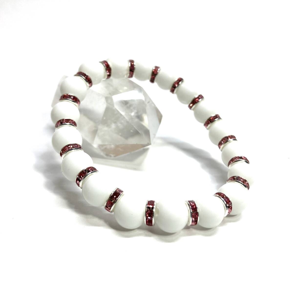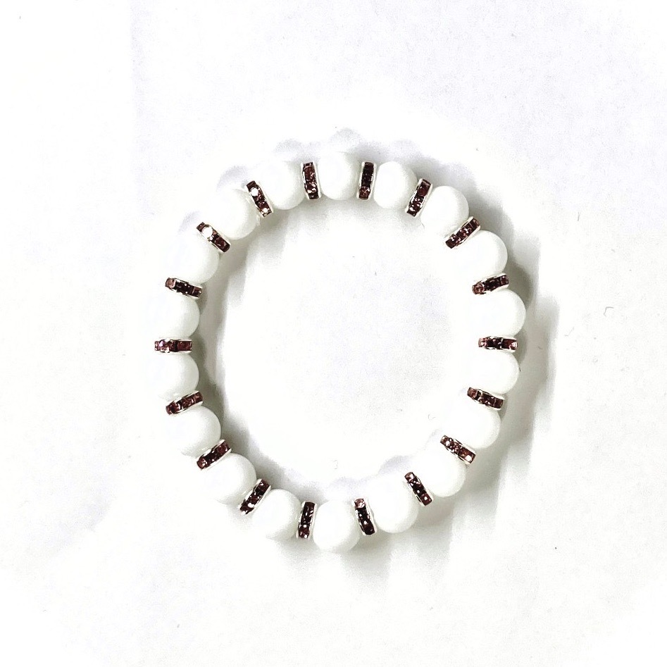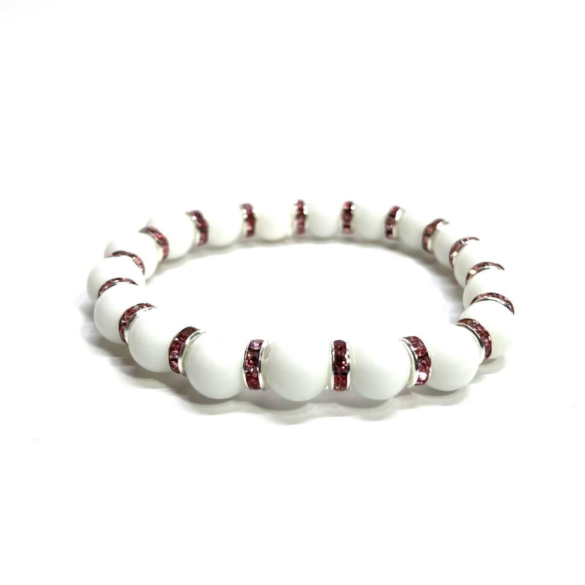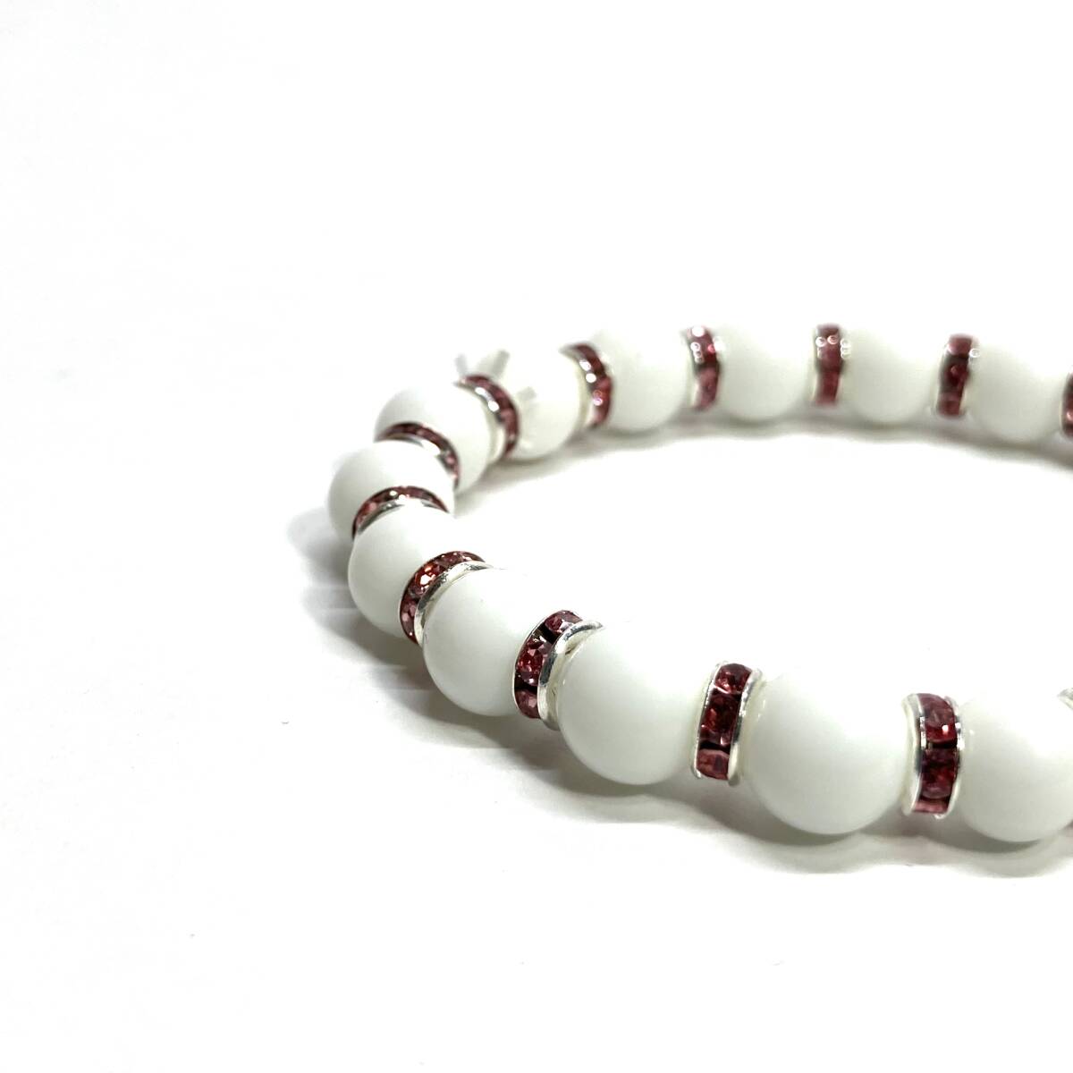 ホワイトオニキス パワーストーン ブレスレット 8mm 天然石ブレス (ピンク) /開運 浄化 厄払い 人間関係 効果 レディース 通販 白