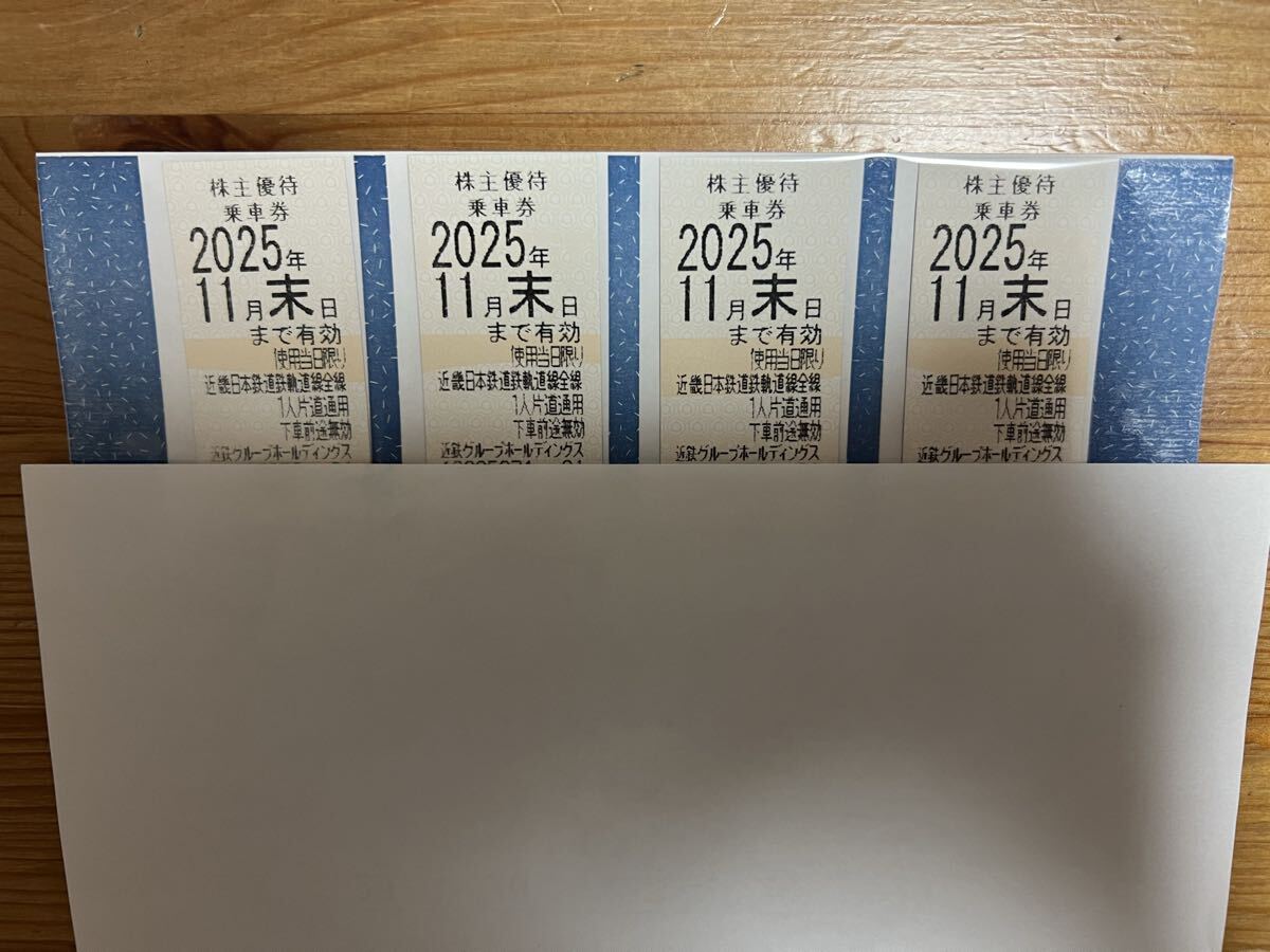 近畿日本鉄道株主優待乗車券4枚セットです。