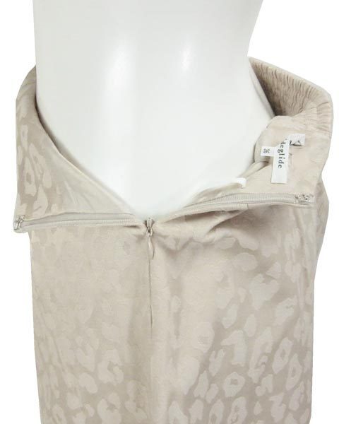 ヒョウ柄のような模様の入ったオシャレなスカート。ややこうたうがあり、華やかな雰囲気。きれい目スタイルにも甘目スタイルにもあわせて頂けます。あわせやすいベージュで、使いやすい。 |