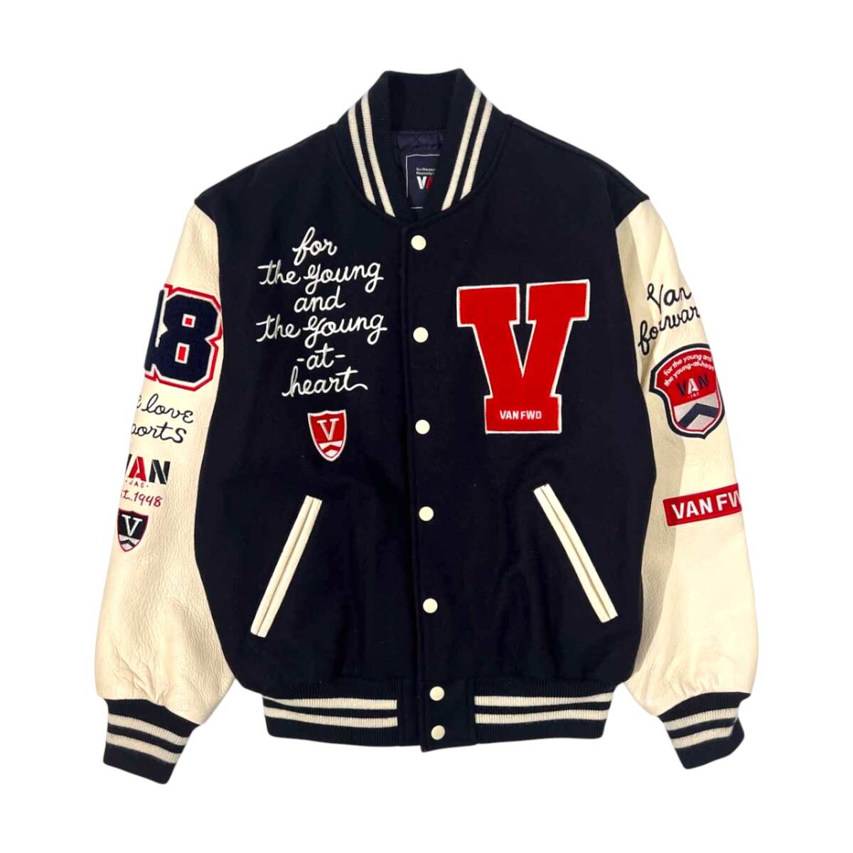 | 商品名 | VAN JAC ヴァンヂャケット FWD フルデコ 袖革スタジャン M/ネイビー ホワイト |
