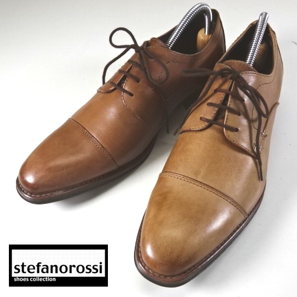 新品訳 ステファノロッシ 本革 レザー ビジネスシューズ 靴 26cm 41 STEFANO ROSSI S-TIP ストレートチップ メンズ 男性 紳士