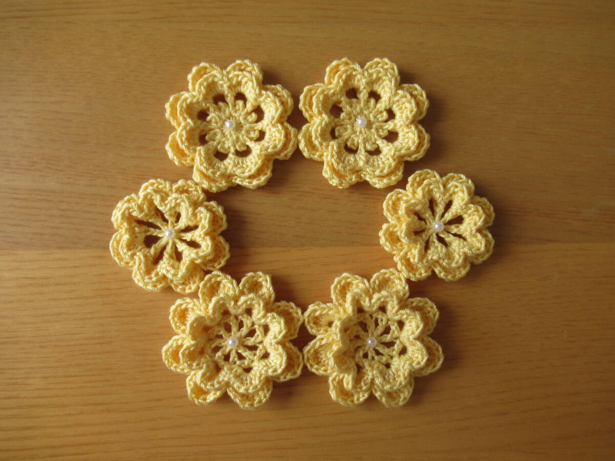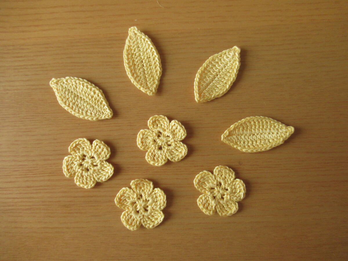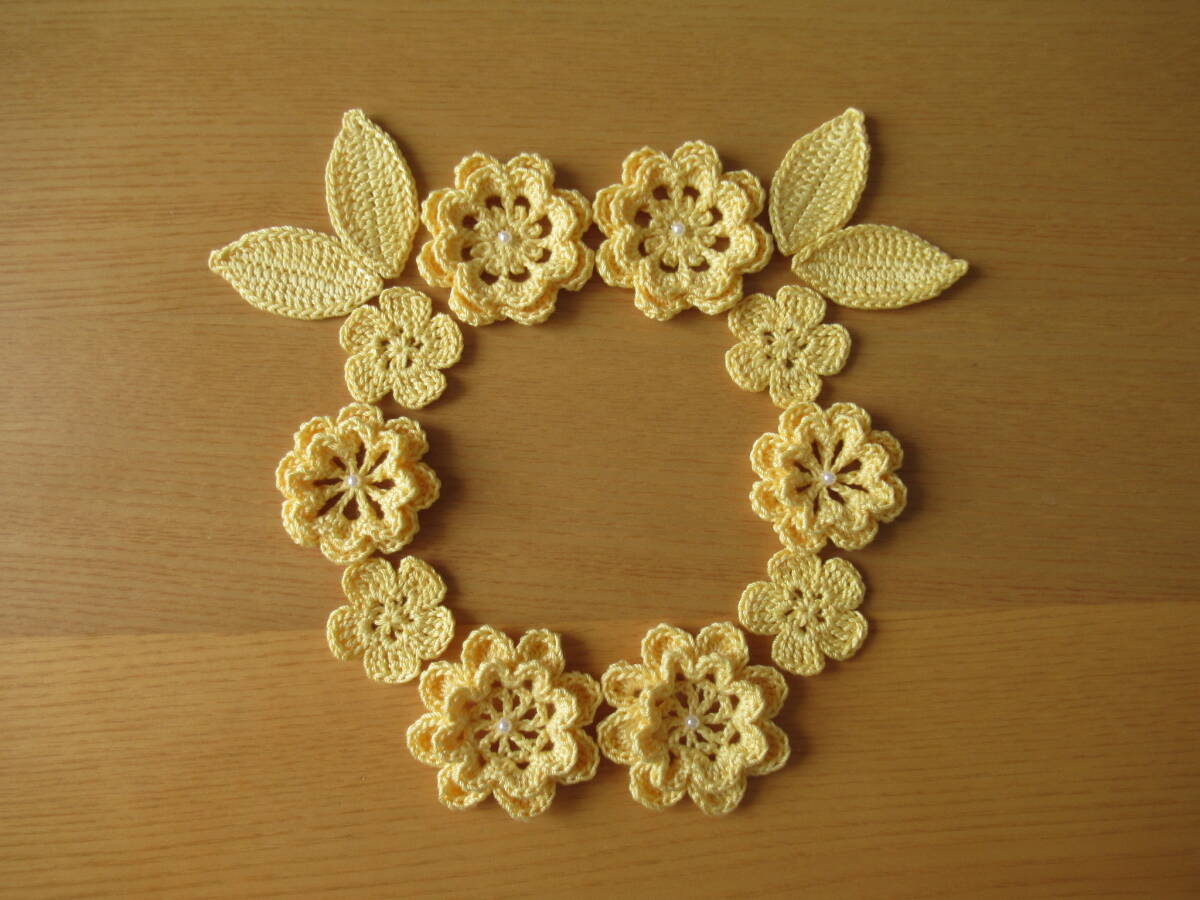 ハンドメイド レース編み お花と葉っぱのモチーフ シトラス