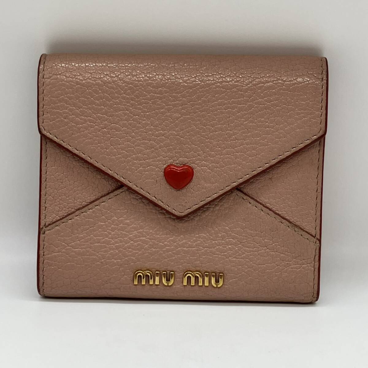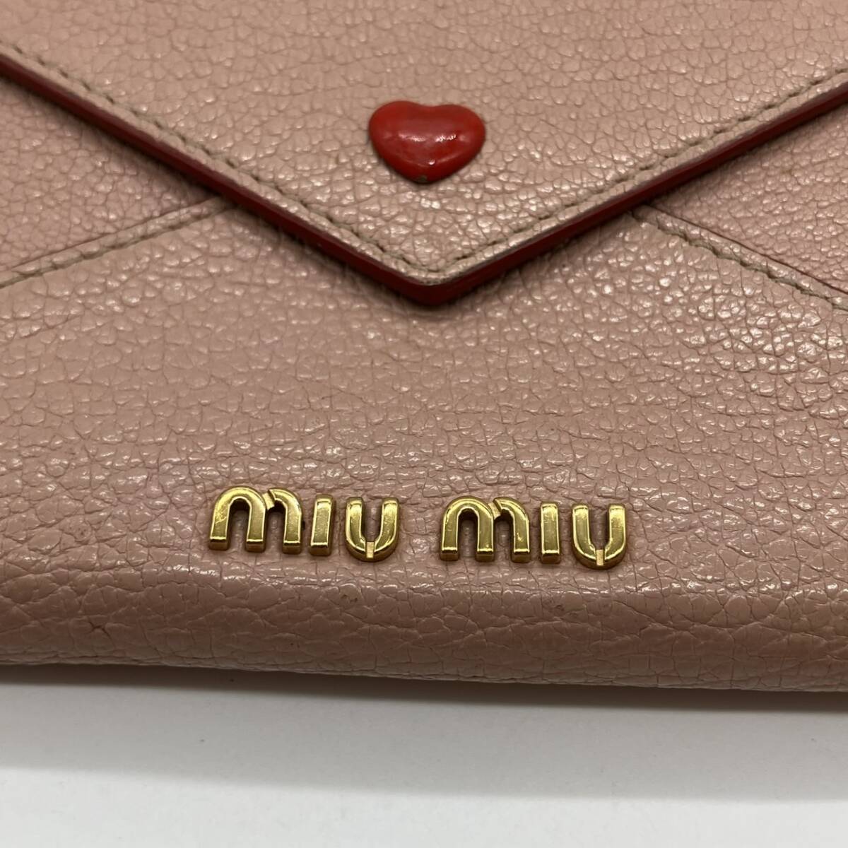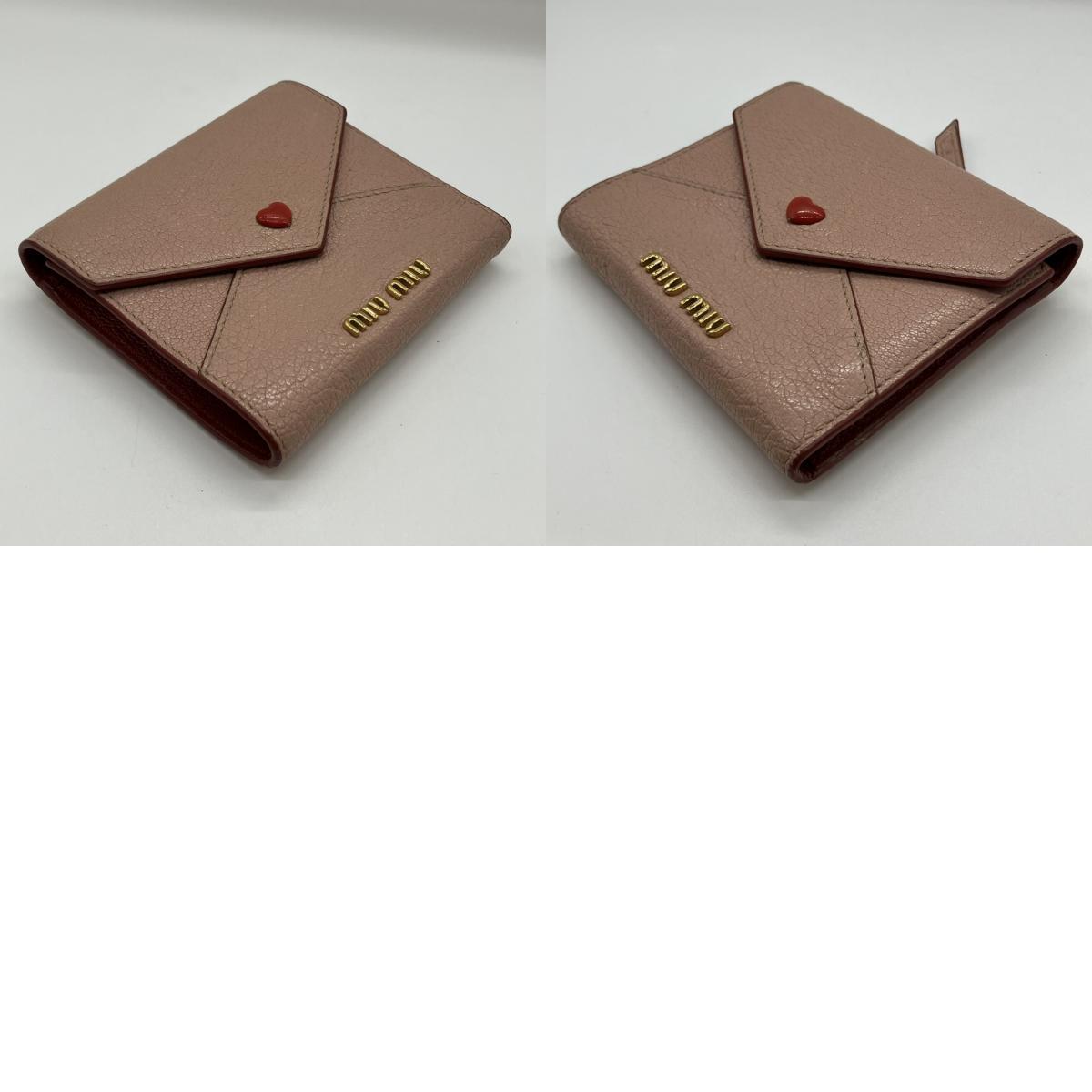 | MIUMIU ミュウミュウ 三つ折り財布 レザー ハート ピンク系 |