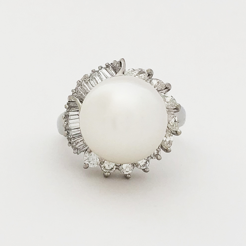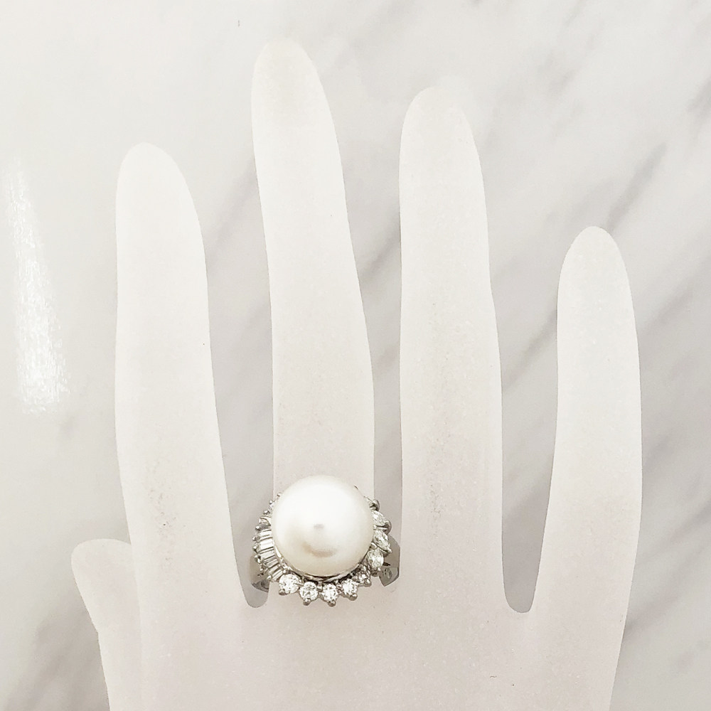 商品名 | 【中古】Pt900 パール リング 指輪 ダイヤ 真珠 レディース ジュエリー パール12.7mm ダイヤ1.10ct 12.2g 15号 |
